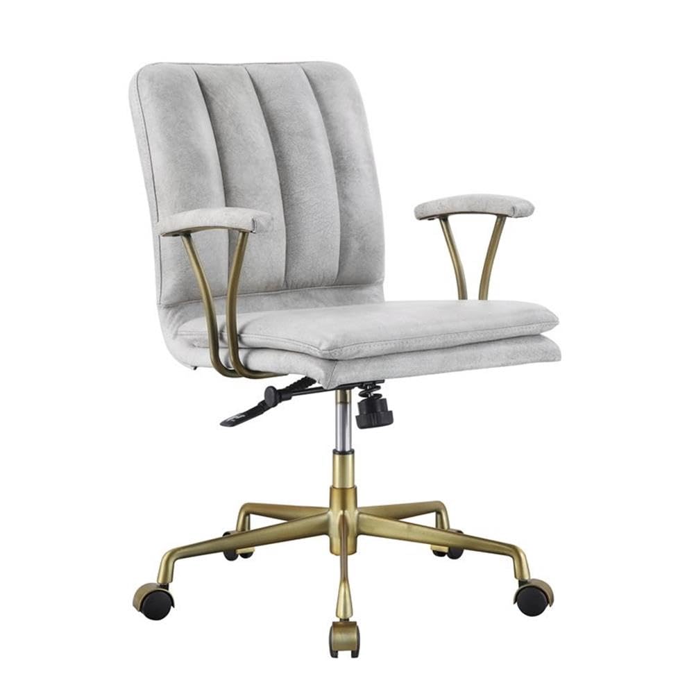 Acme Damir Office Chair In Vintage White Top Grain Leather And Chrome