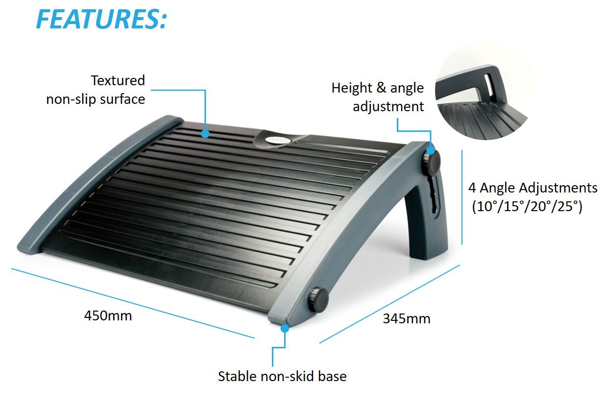 Aidata FR-1001G Sleek Footrest with 4 angle adjustments at 10°/15°/20°/25° (Black/Gray)