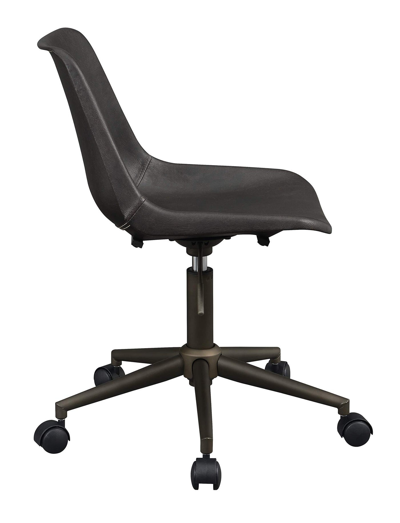 If you prefer a no-frills office space, this simple, brown office chair is an excellent choice. The curved seat offers the perfect amount of support for an efficient workday. Brown fabric upholstery and a matching brown base gives it a no-nonsense look. Smooth caster wheels and an adjustable base add classic comfort and functionality. From rustic to contemporary and more, its unassuming design works well in most any space.