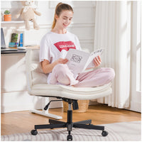 Wider Seat Criss Cross Chair - If You Occasionally Prefer A Casual Sitting Posture, This Cross-Legged Office Chair Is Ideal For You. With A Seat Width Of 25.59' And A Seat Depth Of 18.11', It Provides Over 30% More Seating Space Than Typical Office Chairs. This Offers Increased Comfort And Ample Room For Your Convenience. | Adjustable Swivel Chair - This Wide Desk Chair Offers A 360° Swivel For Both Upright And Cross-Leg Sitting. With A 3.94' Adjustable Seat Height, It Accommodates Various Heights. Enjoy The Freedom To Recline With The 30° Rocking Feature, And Effortlessly Glide On Short-Pile Carpets And Hard Floors With Multi-Directional Casters. | Strong Load Bearing - This Heavy Duty Office Chair Uses An Sgs Certified Class 3 Gas Lift That Can Hold Up To 300 Lbs.Its Curved Construction Provides A Stable Frame With A Balanced Center Of Gravity, Reduce The Risk Of Slipping.The Computer Chair Is Upholstered With Premium Pu Leather, Making It Easy To Care For With A Simple 1-Wipe Cleaning. | Easy Storage - This Armless Office Chair With Wheels Discards Unnecessary Armrests Design, Compatible With Desks Of Different Heights And Helps You Saving A Lot Of Space In Your Home Or Office. It Can Be Used In Various Scenarios, Such As Office Chairs, Desk Chairs, Living Room Chairs, Computer Chairs, Dining Chairs, And Game Chairs. | Simple Assembly - All Necessary Hardware And Tools Are Included. The Installation Of This Cute Desk Chair Can Be Easily Completed According To The Illustrated Manual Or Installation Video We Provide. If You Have Any Questions About This Cross Legged Chair, Please Feel Free To Contact Us.