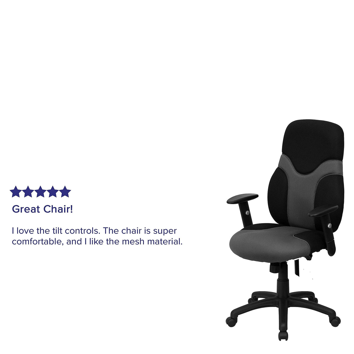 Flash Furniture Abbott High Back Ergonomic Black and Gray Mesh Swivel Task Office Chair with Adjustable Arms