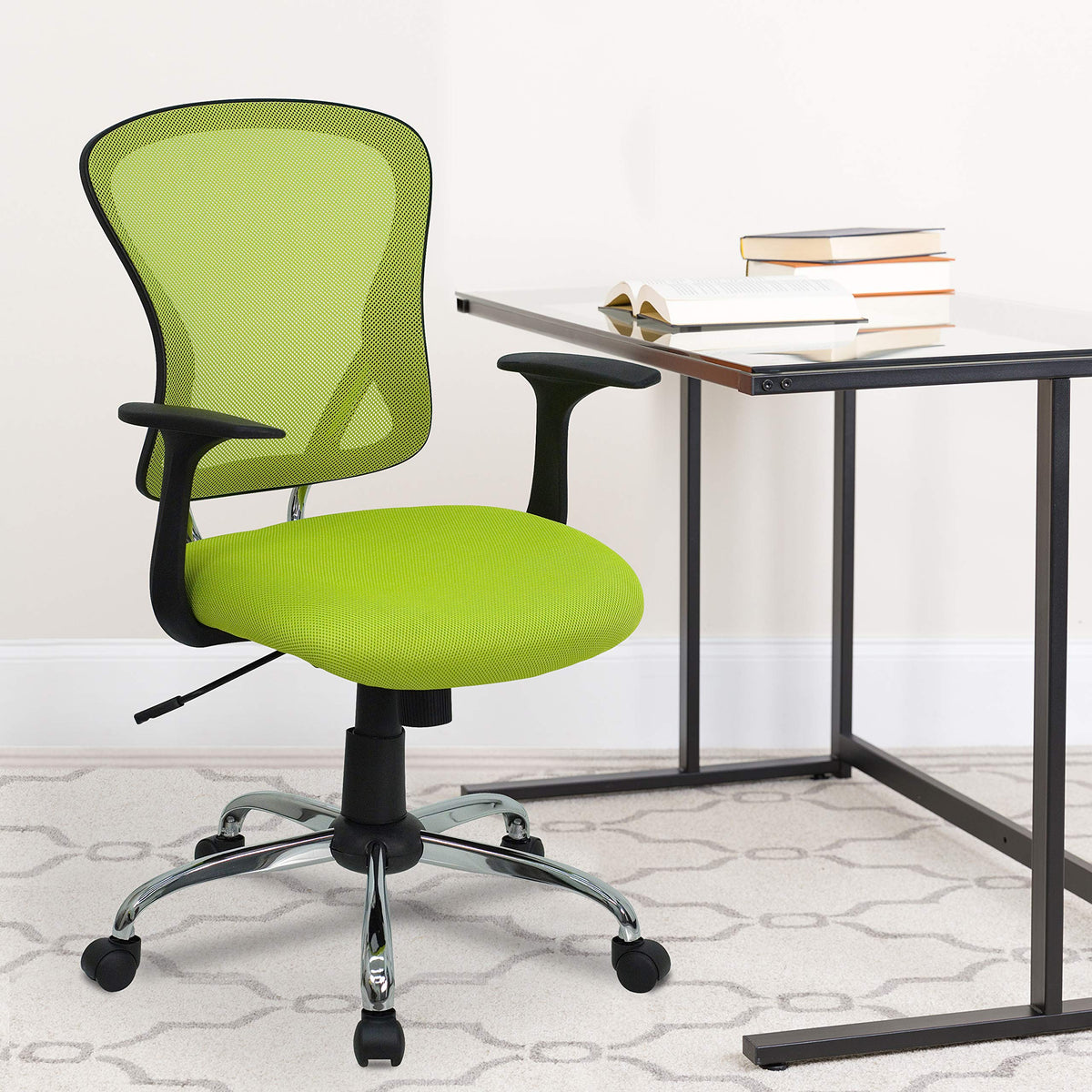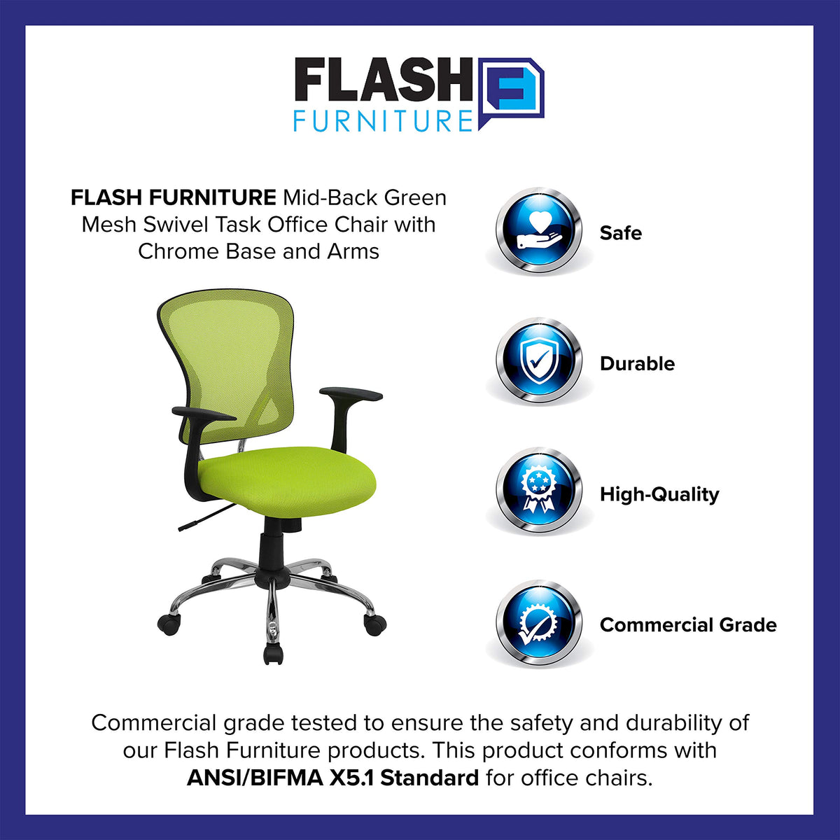 Flash Furniture Alfred Mid-Back Green Mesh Swivel Task Office Chair with Chrome Base and Arms