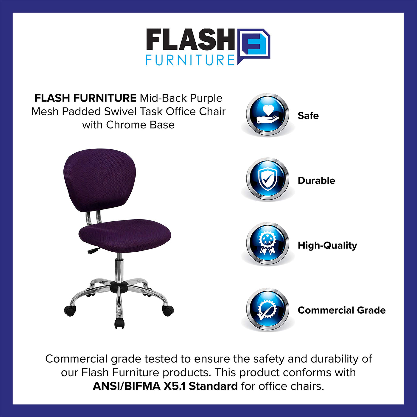 Flash Furniture Beverly Mid-Back Purple Mesh Padded Swivel Task Office Chair with Chrome Base