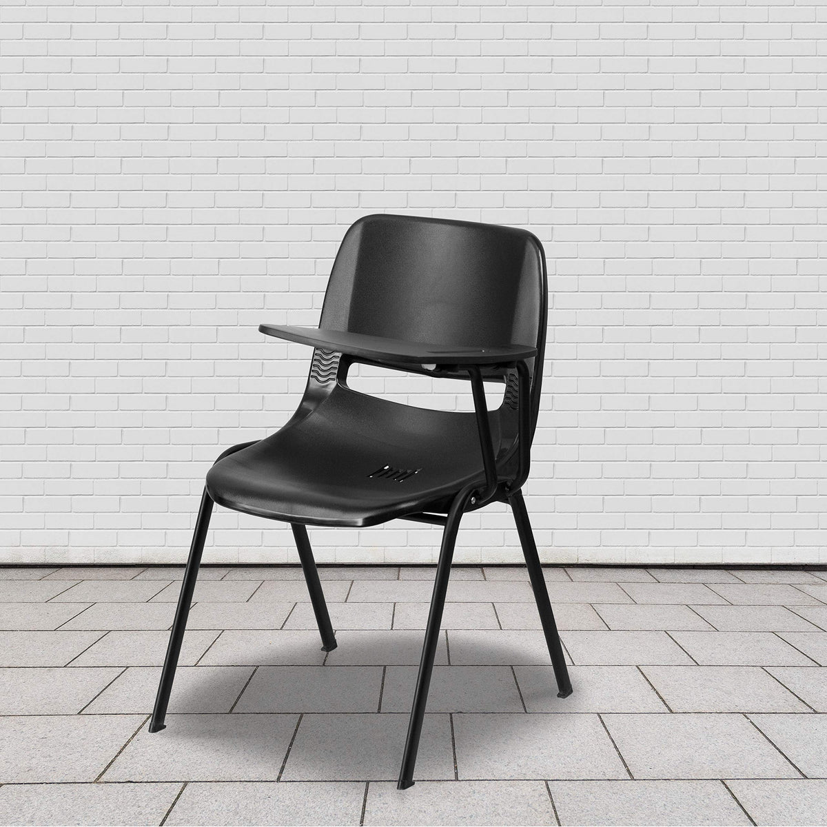 Flash Furniture Black Ergonomic Shell Chair with Left Handed Flip-Up Tablet Arm