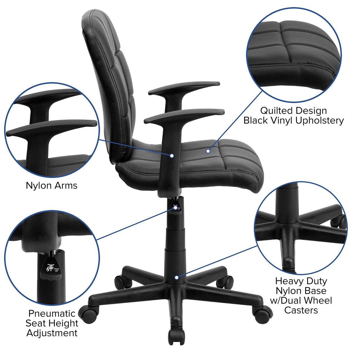 Flash Furniture Clayton Mid-Back Black Quilted Vinyl Swivel Task Office Chair with Arms