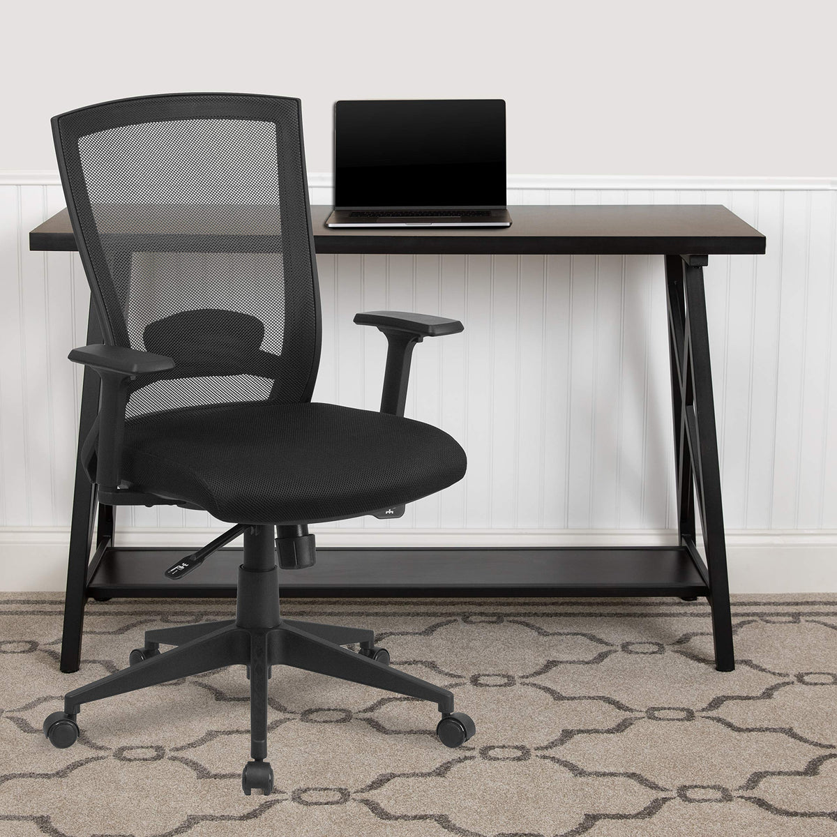 Flash Furniture Cleo Mid-Back Black Mesh Executive Swivel Ergonomic Office Chair with Back Angle Adjustment and Adjustable Arms