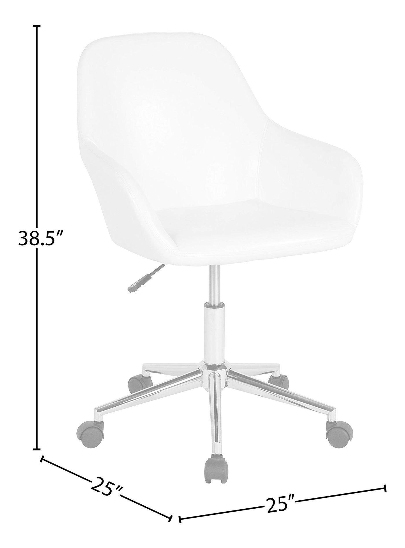 Reminiscent Of An Earlier Time, The Classic Style Of This Bucket Type Task Chair Will Always Be Popular. This Chair Boasts Stylish Integrated Flared Arms And White Leathersoft Upholstery. Leathersoft Is Leather And Polyurethane For Added Softness And Durability. This Chair Is Ideal For Those Who Spend The Bulk Of Their Day Seated Because Of The Mid Back Support That It Offers To The Mid To Upper Back Region. Chair Rotates 360 Degrees To Provide Easy Access To All Of Your Work Surfaces. A Pneumatic Seat Height Adjustment Lever Lets You Easily Position The Chair At A Height That Is Most Comfortable For You. The Chrome Base Provides A Modern Finish To This Sophisticated Versatile Home Or Office Chair. This Retro-Modern Office Chair Is A Great Choice To Complete The Look In Any Office, Reception, Conference Room Or Home Office.