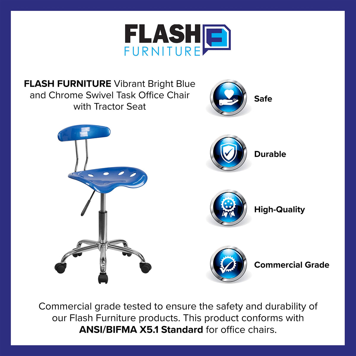 Flash Furniture Elliott Vibrant Bright Blue and Chrome Swivel Task Office Chair with Tractor Seat