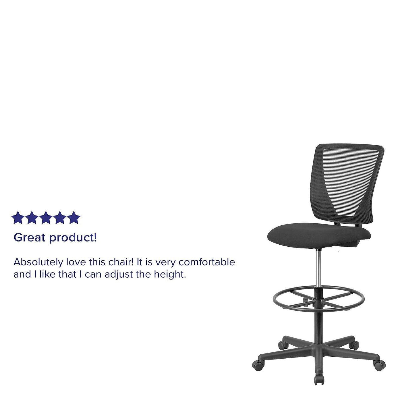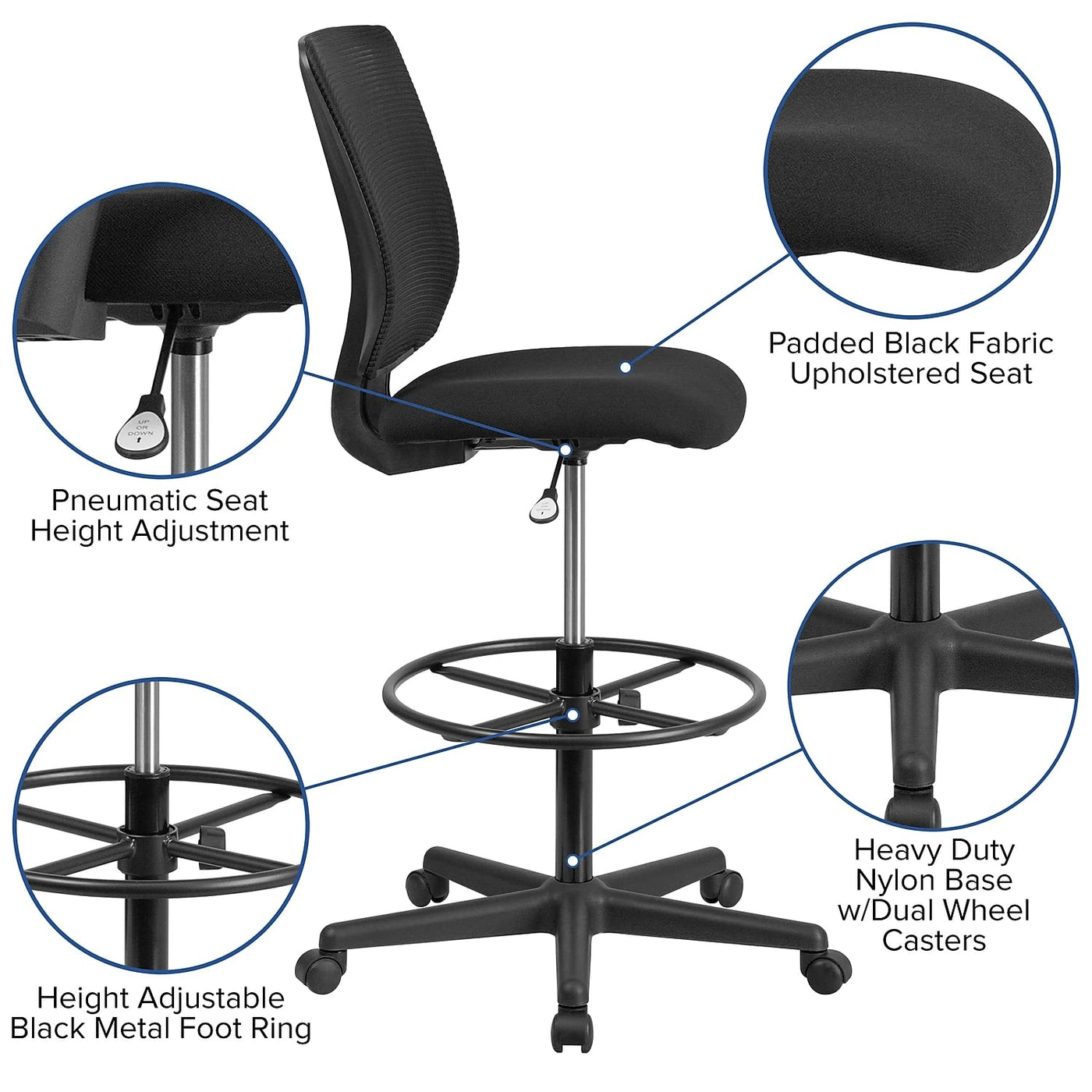 Flash Furniture Harper Ergonomic Mid-Back Mesh Drafting Chair with Black Fabric Seat and Adjustable Foot Ring