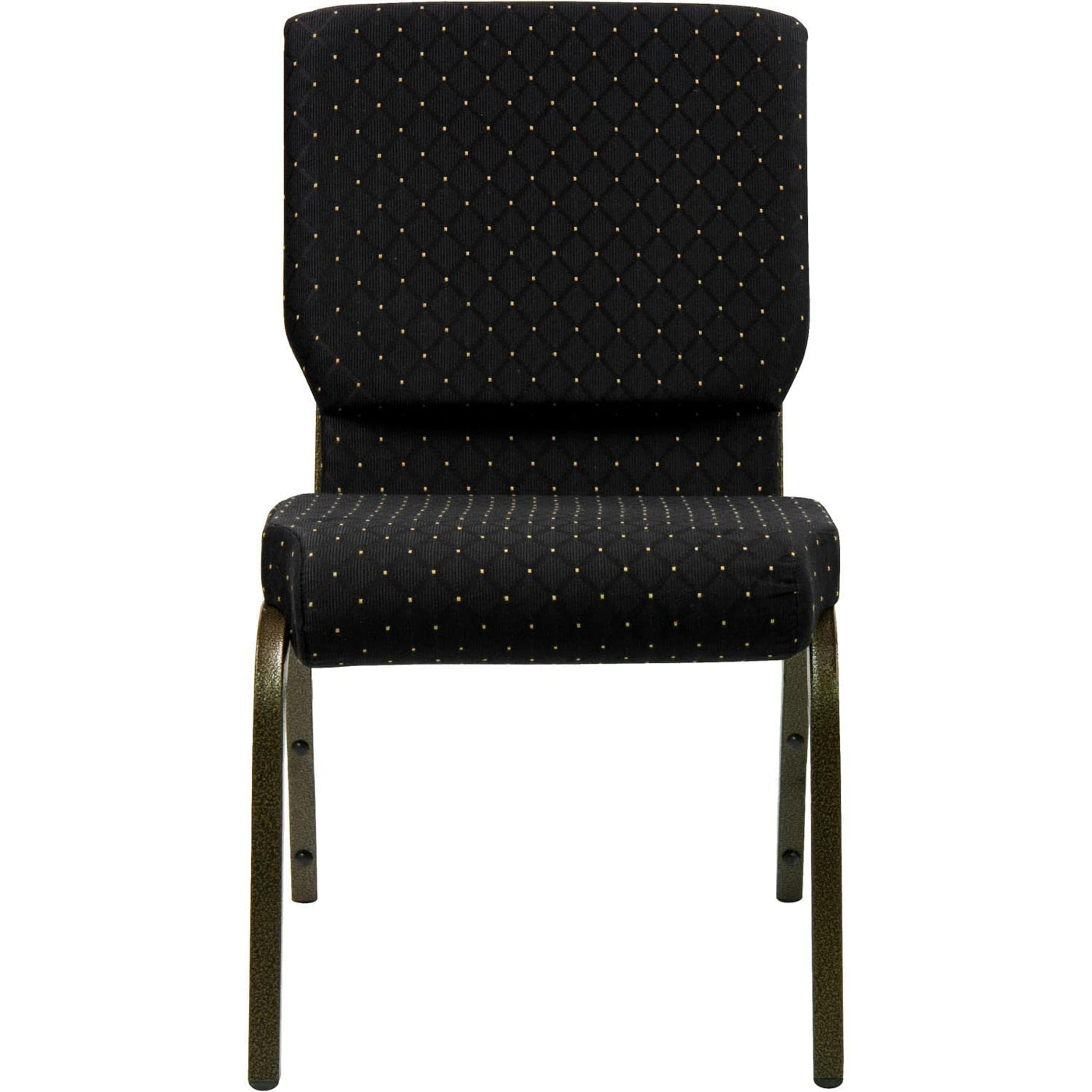 Flash Furniture HERCULES Series 18.5''W Stacking Church Chair in Black Dot Patterned Fabric - Gold Vein Frame
