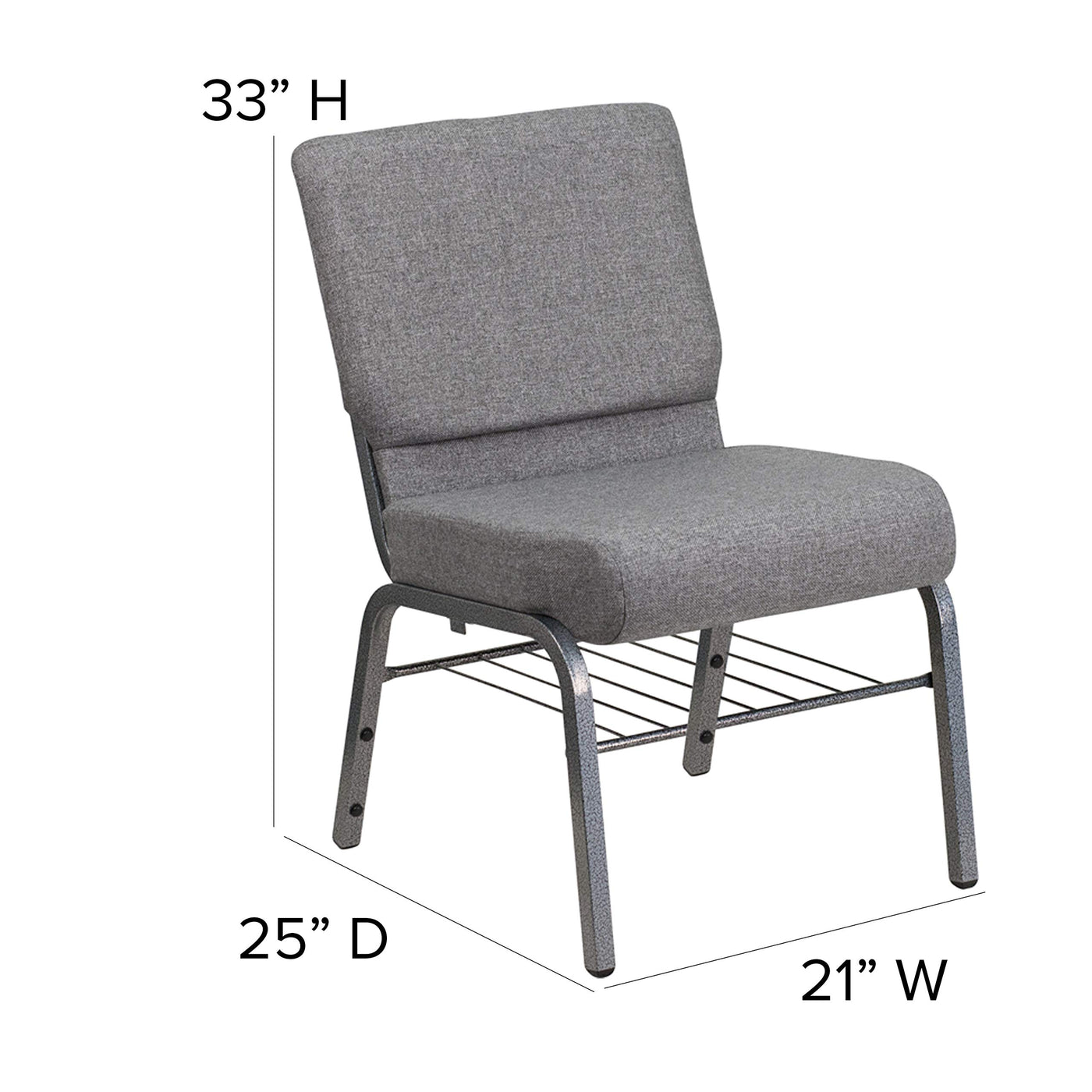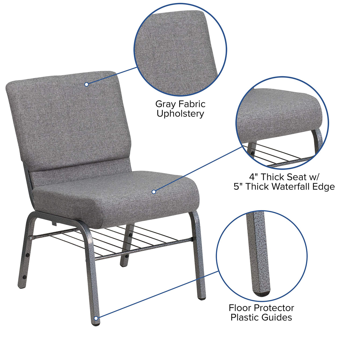 Flash Furniture HERCULES Series 21''W Church Chair in Gray Fabric with Book Rack - Silver Vein Frame