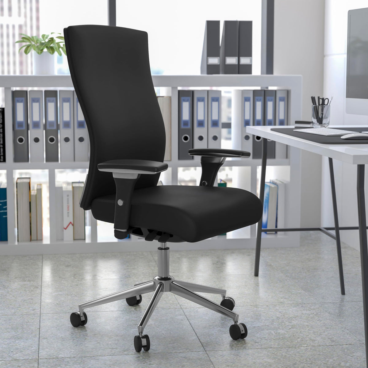 Flash Furniture HERCULES Series 24/7 Intensive Use 300 lb. Rated Black LeatherSoft Multifunction Ergonomic Office Chair with Seat Slider