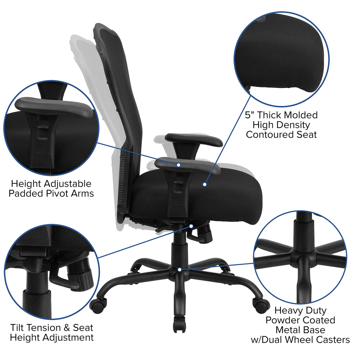 Flash Furniture HERCULES Series 24/7 Intensive Use Big & Tall 400 lb. Rated Black Mesh Multifunction Synchro-Tilt Ergonomic Office Chair