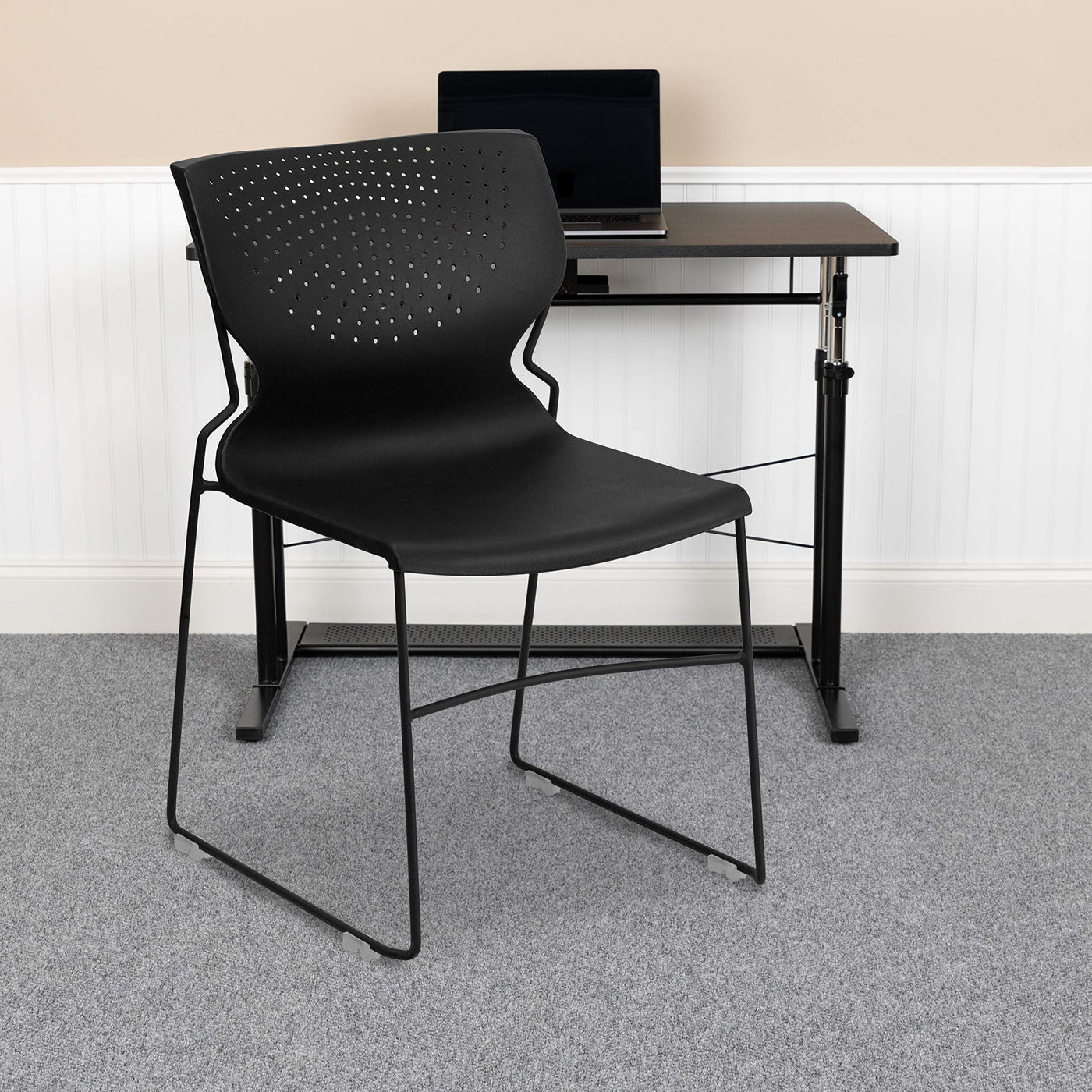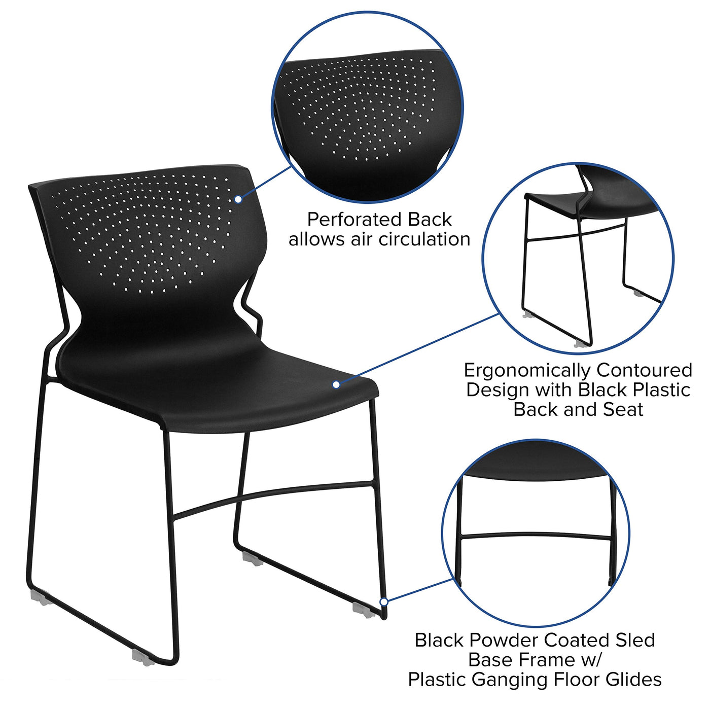 Flash Furniture HERCULES Series 661 lb. Capacity Black Full Back Stack Chair with Black Powder Coated Frame