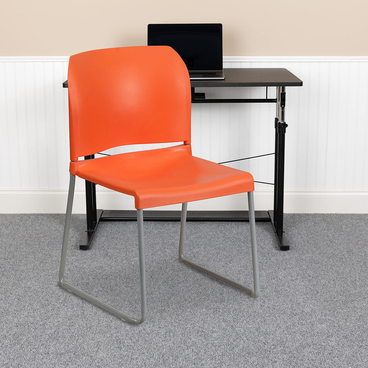 Flash Furniture HERCULES Series 880 lb. Capacity Orange Full Back Contoured Stack Chair with Gray Powder Coated Sled Base