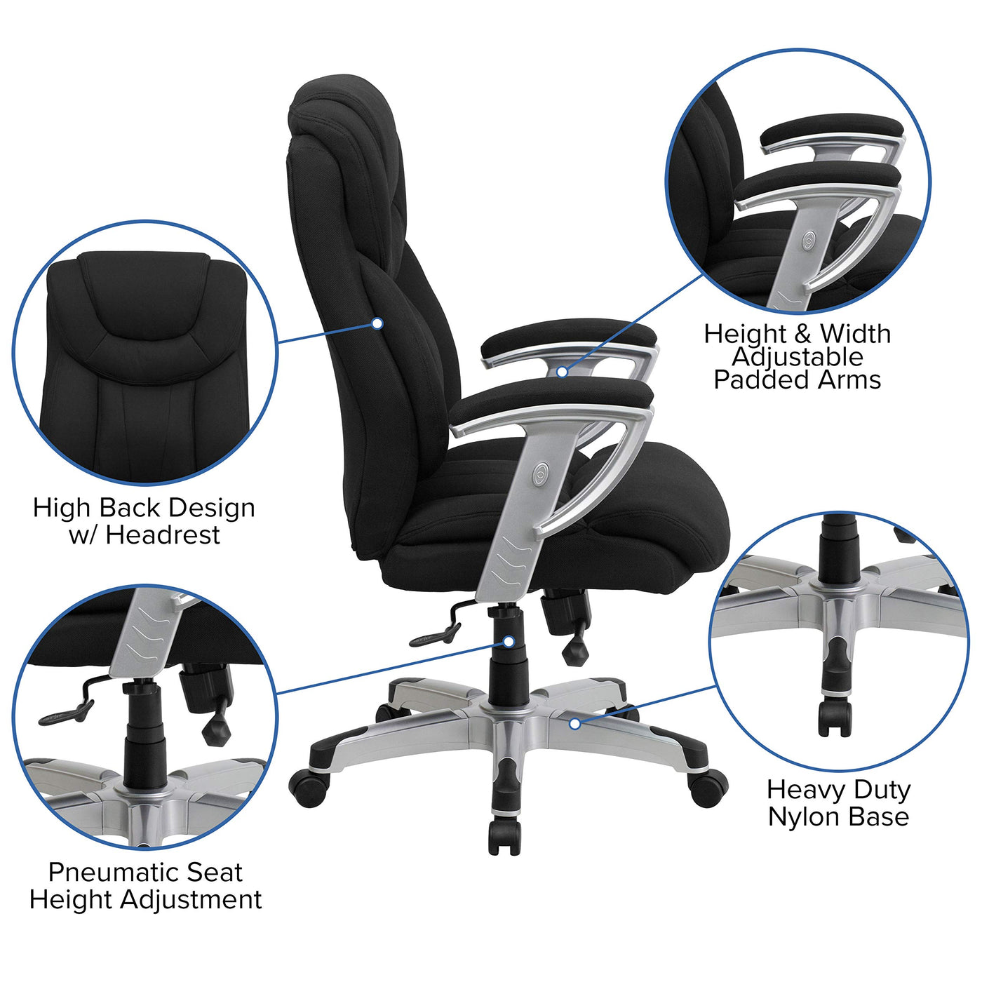 Flash Furniture HERCULES Series Big & Tall 400 lb. Rated Black Fabric Executive Ergonomic Office Chair with Silver Adjustable Arms