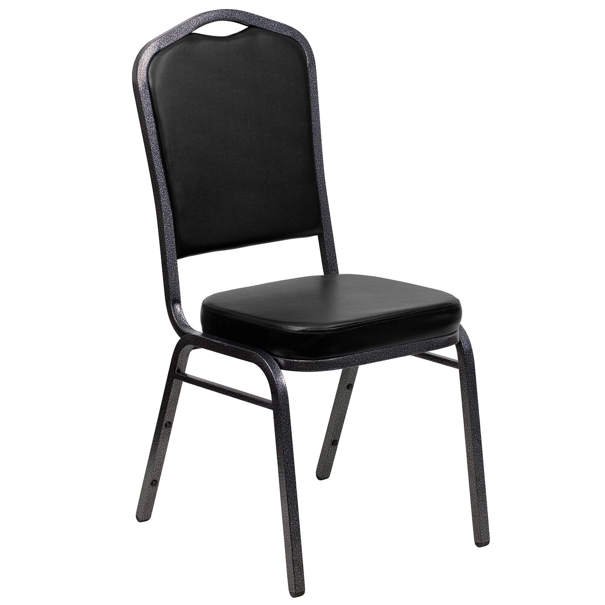 Flash Furniture HERCULES Series Crown Back Stacking Banquet Chair in Black Vinyl - Silver Vein Frame