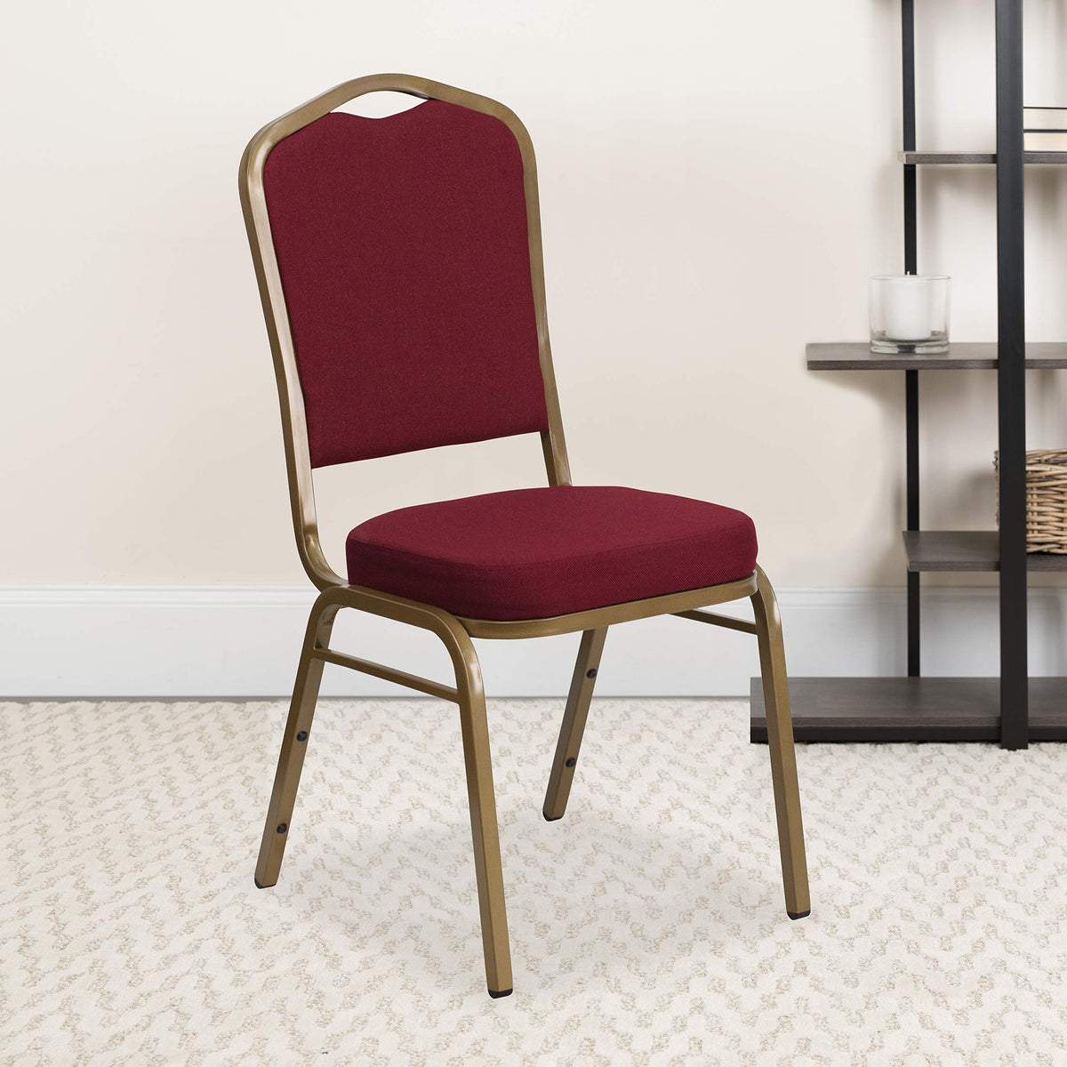 Flash Furniture HERCULES Series Crown Back Stacking Banquet Chair in Burgundy Fabric - Gold Frame