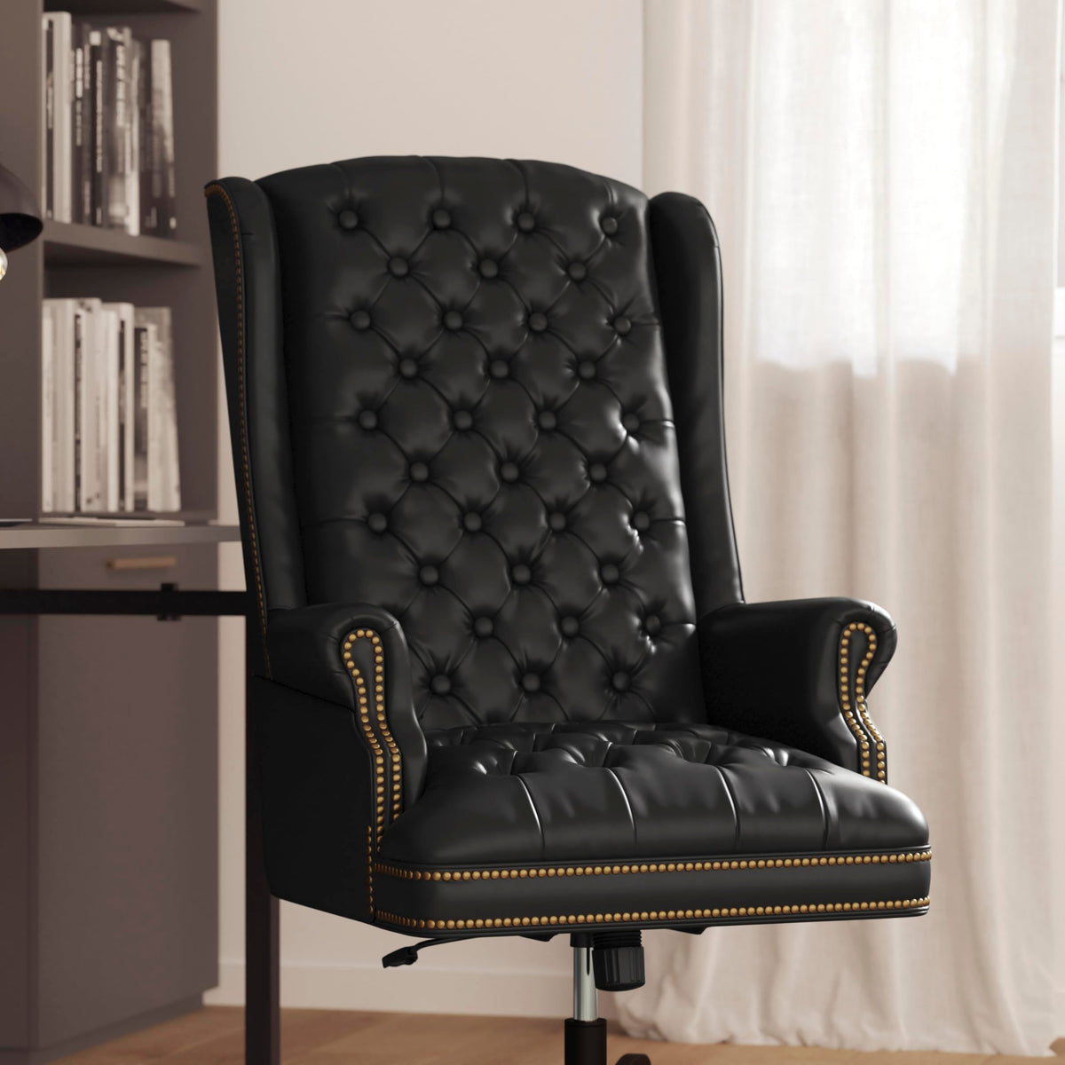 Flash Furniture High Back Traditional Fully Tufted Black LeatherSoft Executive Swivel Ergonomic Office Chair with Arms