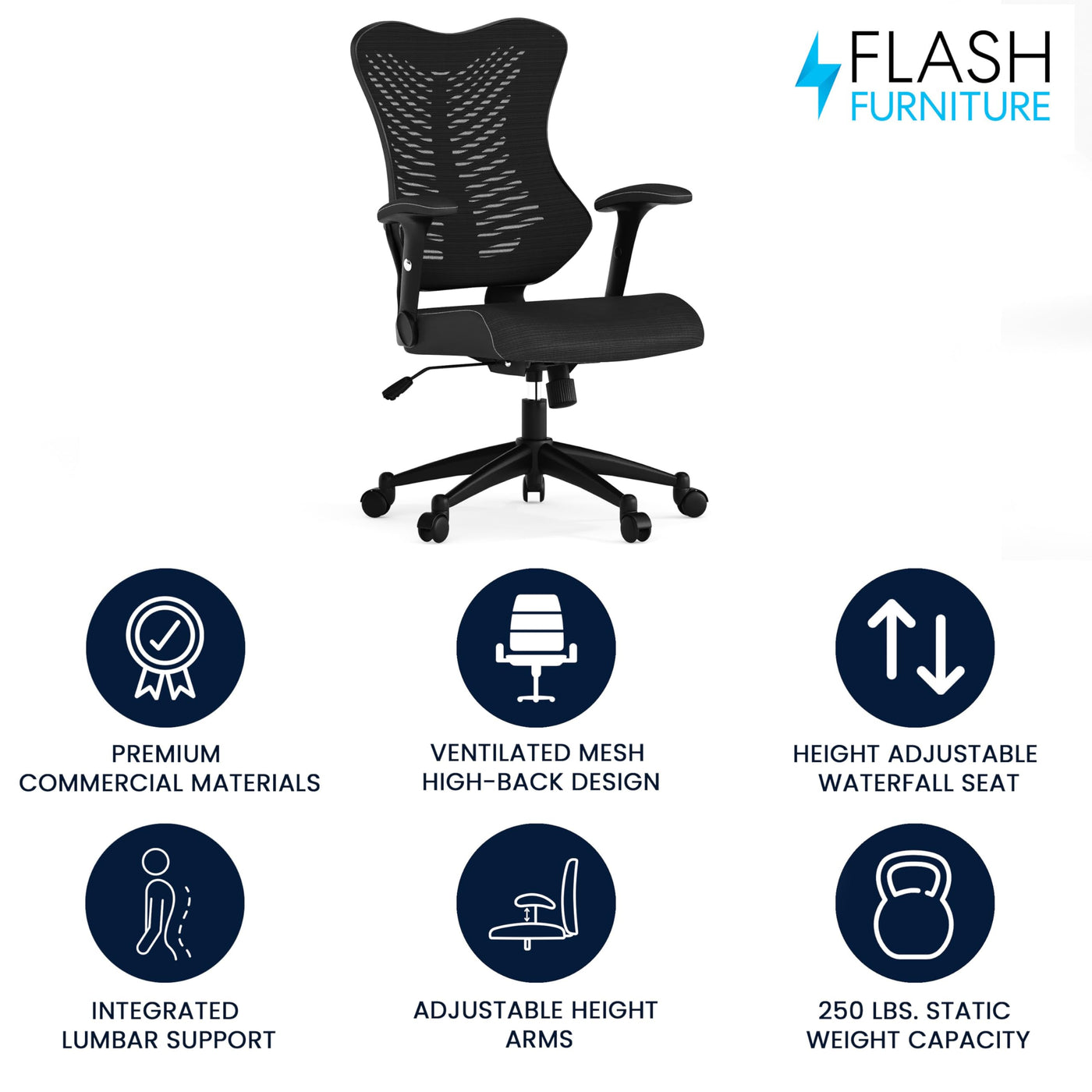Flash Furniture Kale High Back Designer Black Mesh Executive Swivel Ergonomic Office Chair with Adjustable Arms