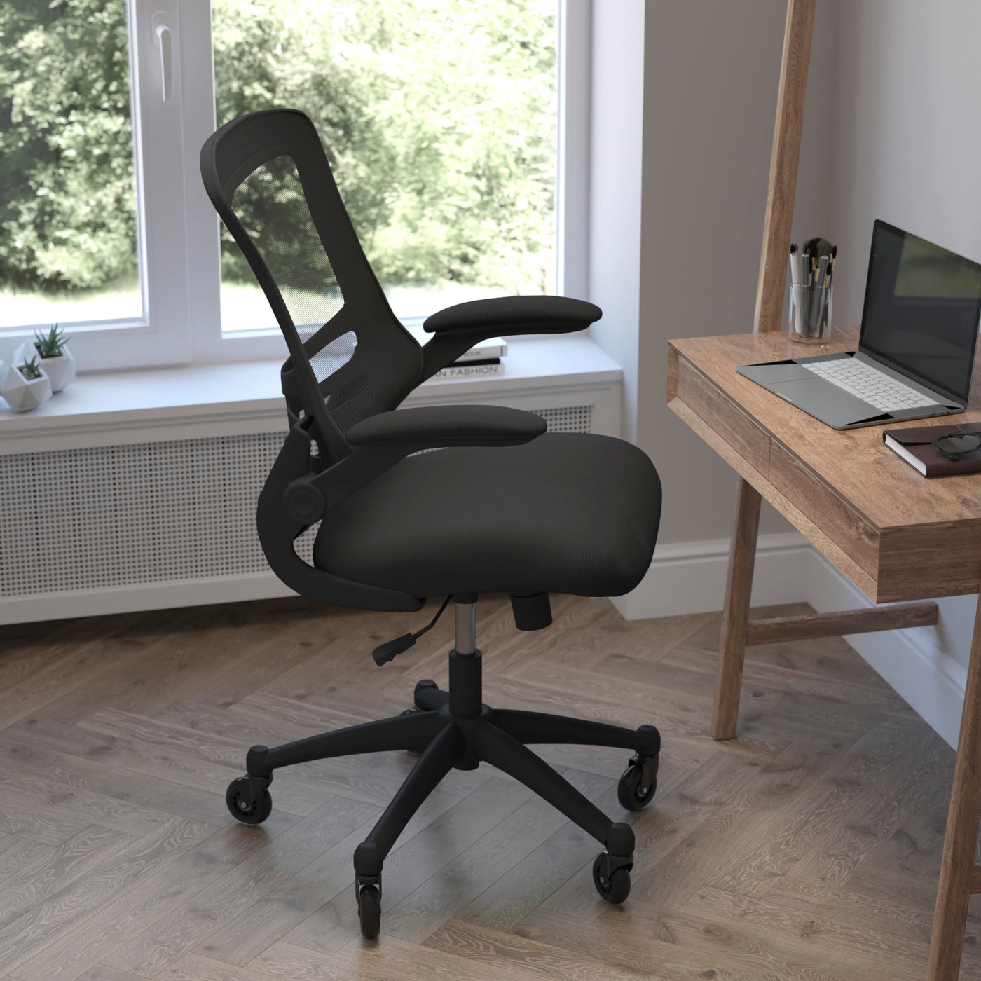 Flash Furniture Kelista Mid-Back Black Mesh Swivel Ergonomic Task Office Chair With Flip-Up Arms And Transparent Roller Wheels
