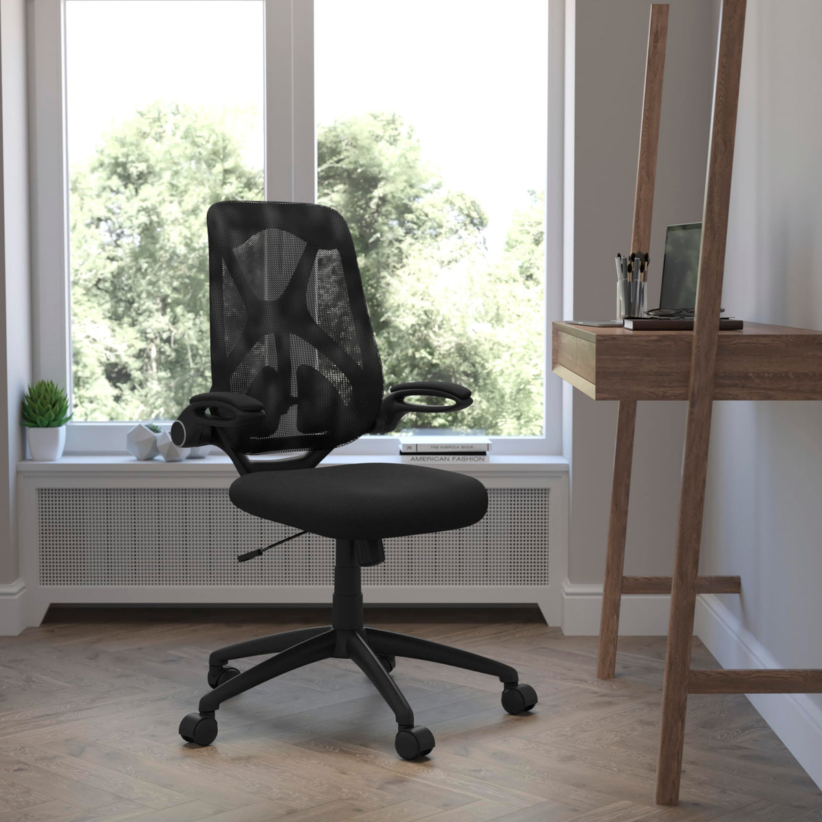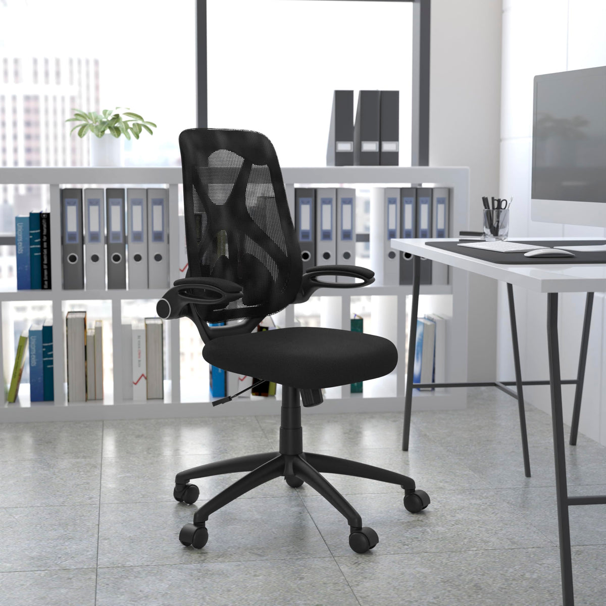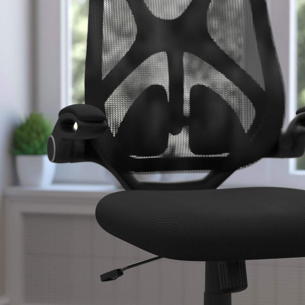 Flash Furniture Kimble High Back Black Mesh Executive Swivel Ergonomic Office Chair with Adjustable Lumbar, 2-Paddle Control and Flip-Up Arms