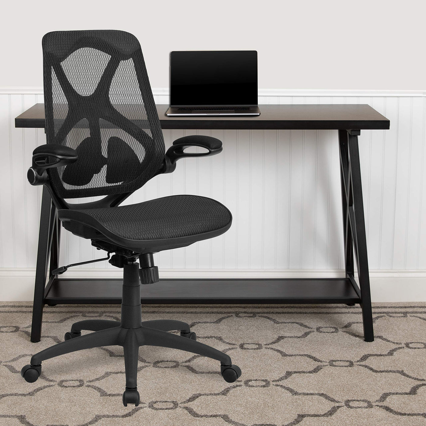 Flash Furniture Kimble High Back Transparent Black Mesh Executive Ergonomic Office Chair with Adjustable Lumbar, 2-Paddle Control & Flip-Up Arms