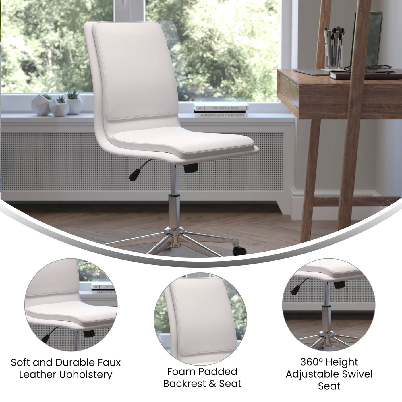 Flash Furniture Madigan Task Office Chair - Luxurious White Leathersoft Upholstery - Padded Mid-Back And Seat - Height Adjustable Chrome Base - Armless