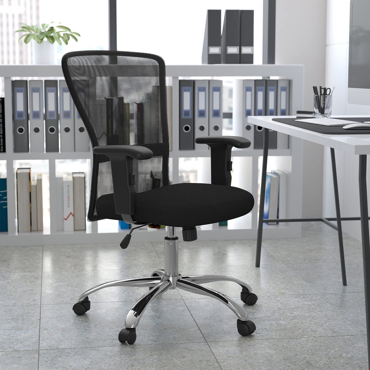 Flash Furniture Mid-Back Black Mesh Contemporary Swivel Task Chair with Chrome Base and Height Adjustable Arms