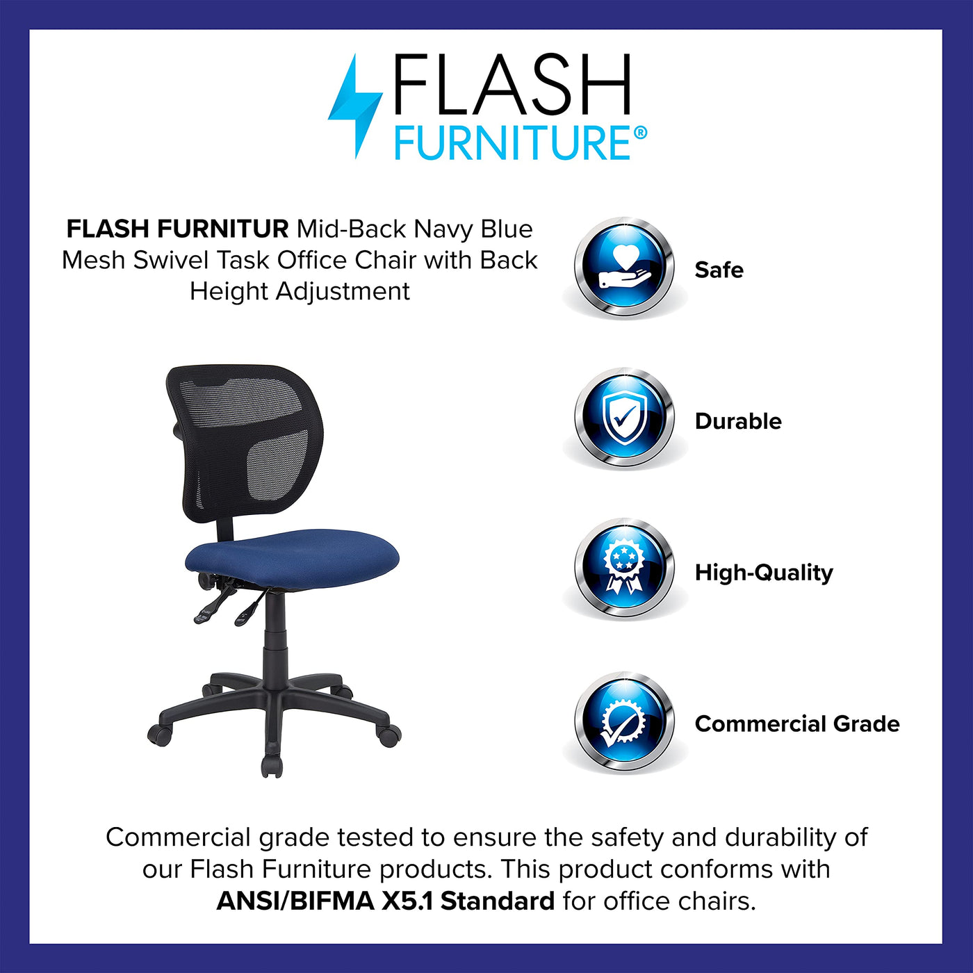 Flash Furniture Mid-Back Navy Blue Mesh Swivel Task Office Chair with Back Height Adjustment