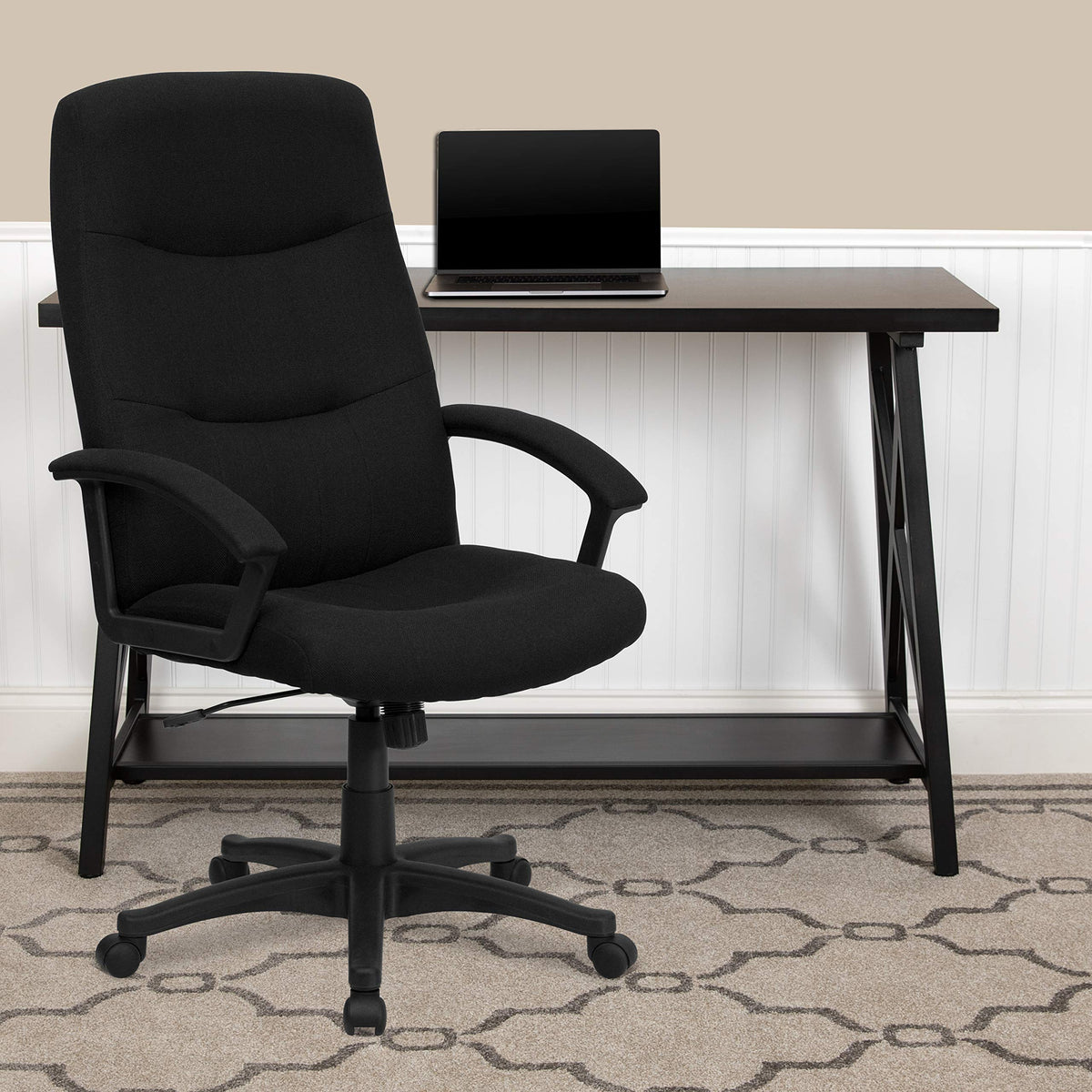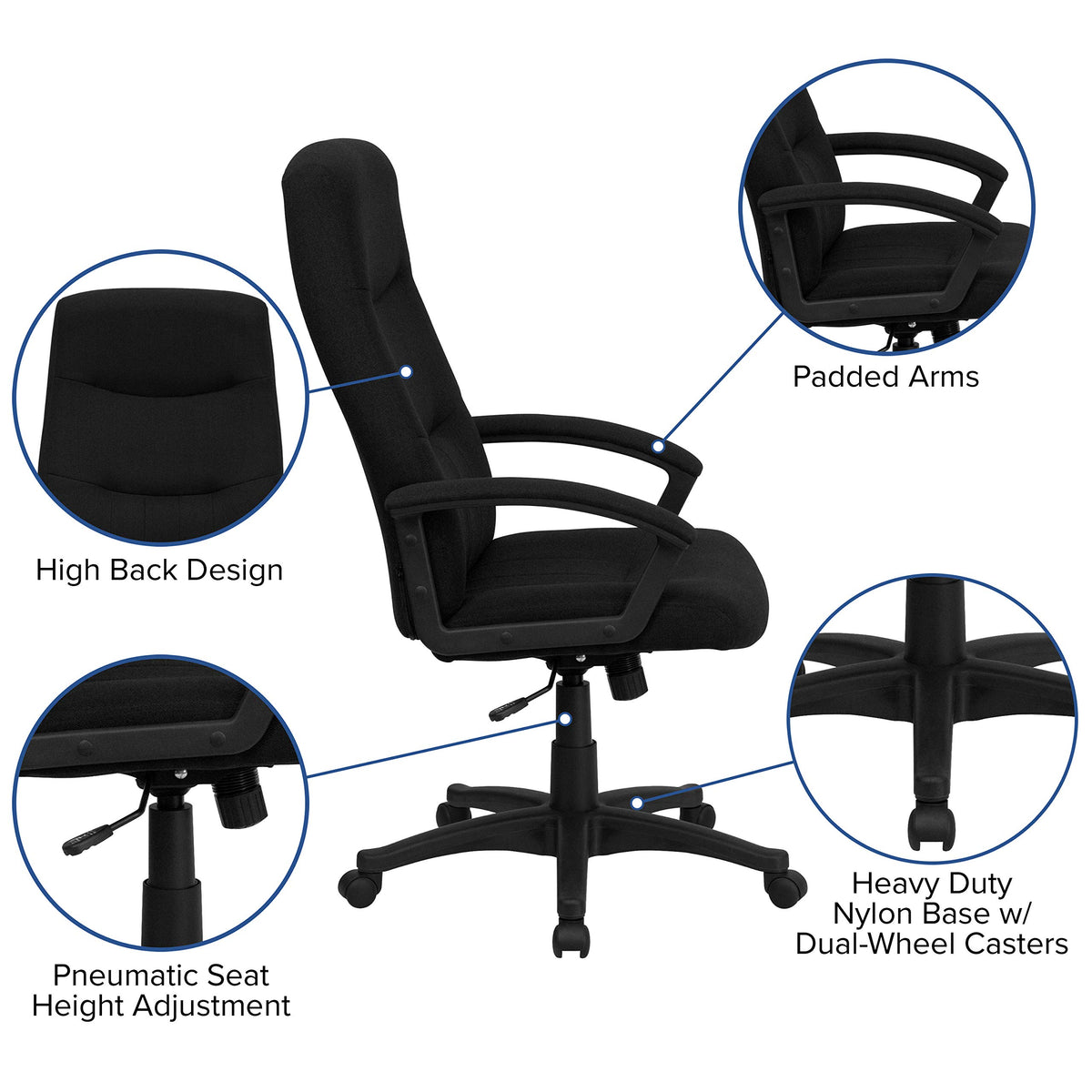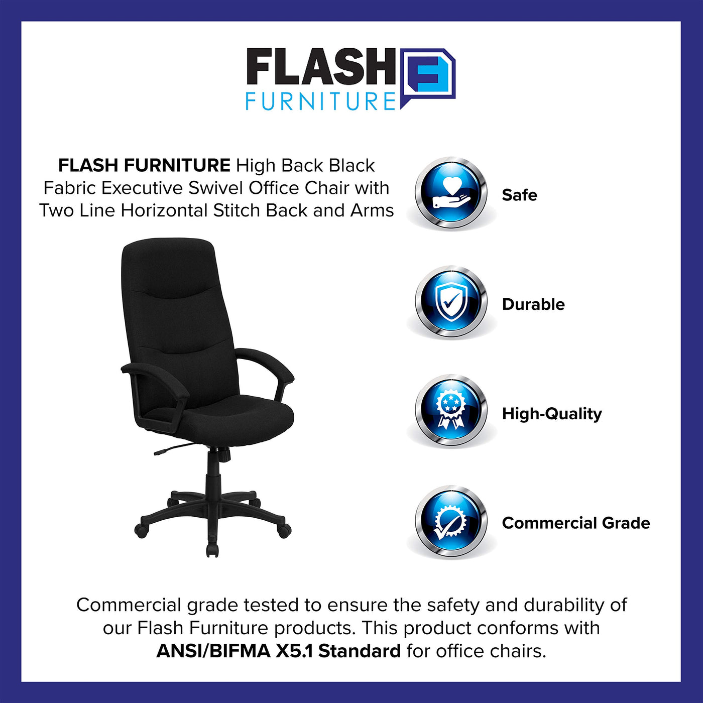 Flash Furniture Rochelle High Back Black Fabric Executive Swivel Office Chair with Two Line Horizontal Stitch Back and Arms