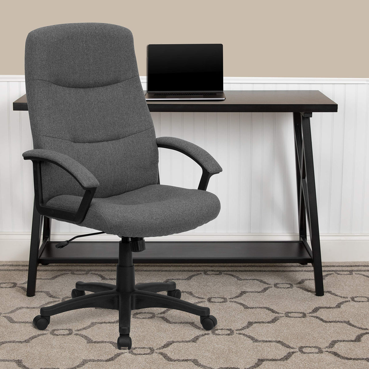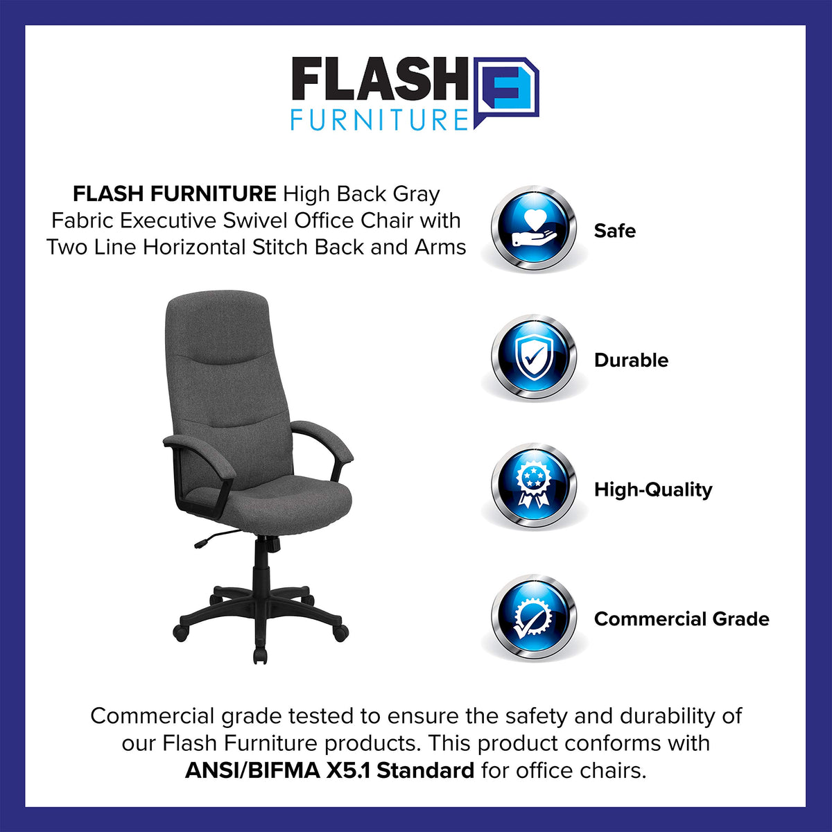 Flash Furniture Rochelle High Back Gray Fabric Executive Swivel Office Chair with Two Line Horizontal Stitch Back and Arms