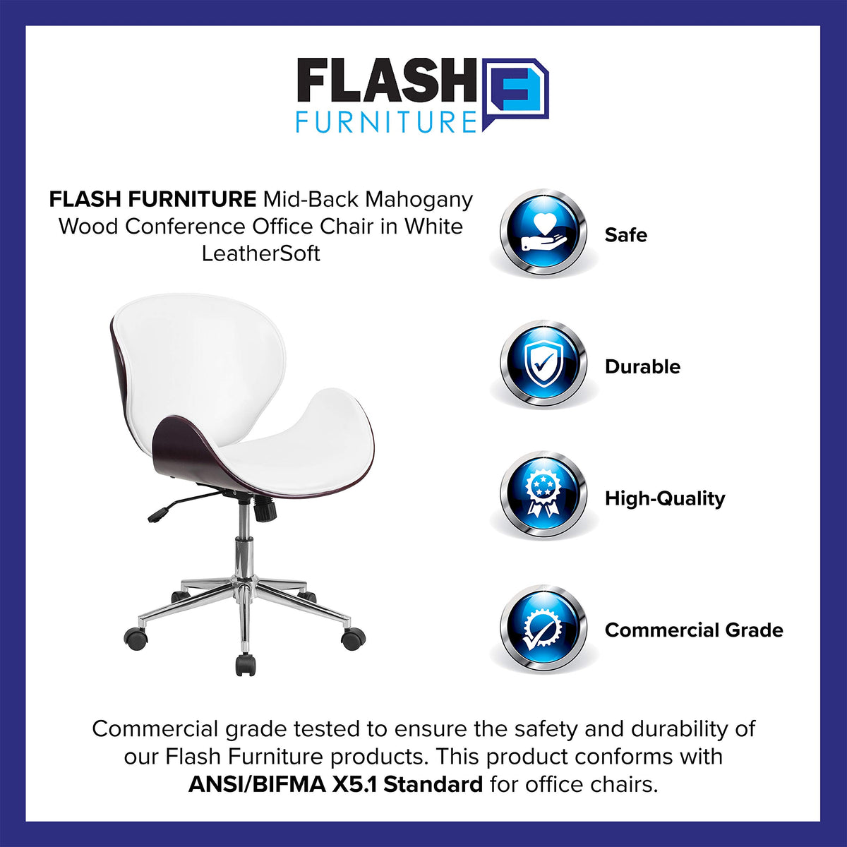 Flash Furniture Tana Mid-Back Mahogany Wood Conference Office Chair in White LeatherSoft