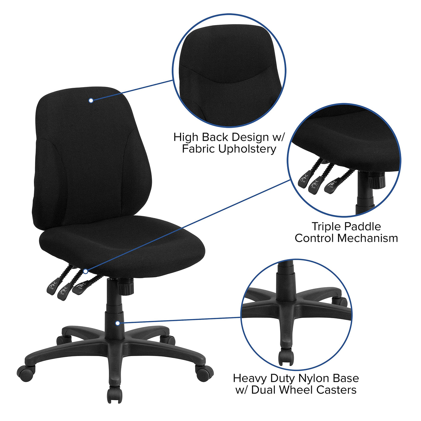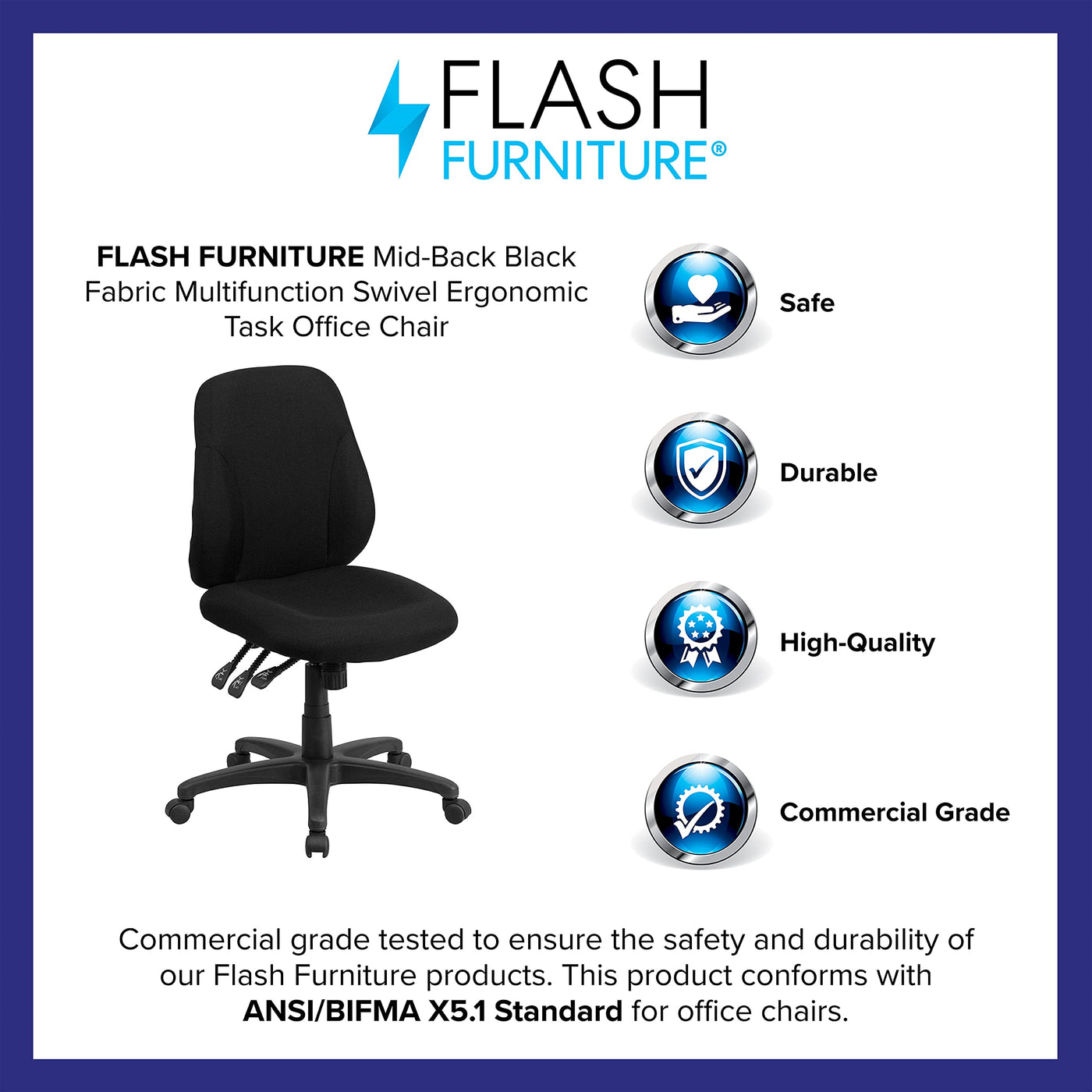 This multi-functional office chair features a triple paddle control to adjust the seat height, back angle and tilt lock. This chair offers great comfort benefits when having to sit for long periods at a time. A mid-back office chair offers support to the mid-to-upper back region. This chair is ideal for anyone who does a great deal of typing throughout the day and needs good back support. The locking back angle adjustment lever changes the angle of your torso to reduce disc pressure. Chair easily swivels 360 degrees to get the maximum use of your workspace without strain. The pneumatic adjustment lever will allow you to easily adjust the seat to your desired height.