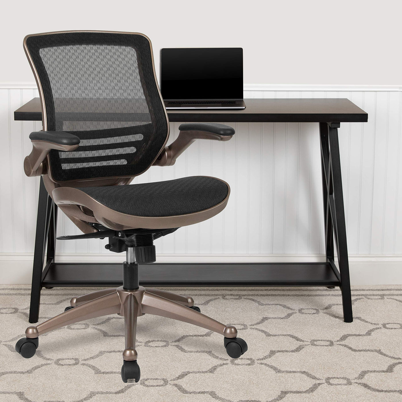 Flash Furniture Warfield Mid-Back Transparent Black Mesh Executive Swivel Office Chair With Melrose Gold Frame And Flip-Up Arms