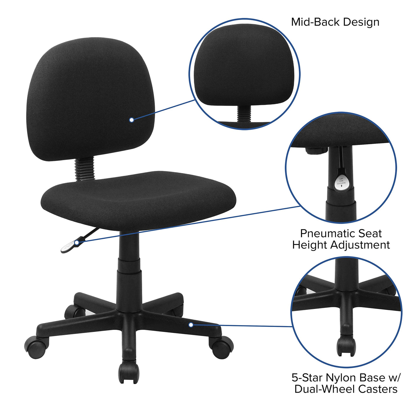 Flash Furniture Wayne Mid-Back Black Fabric Swivel Task Office Chair