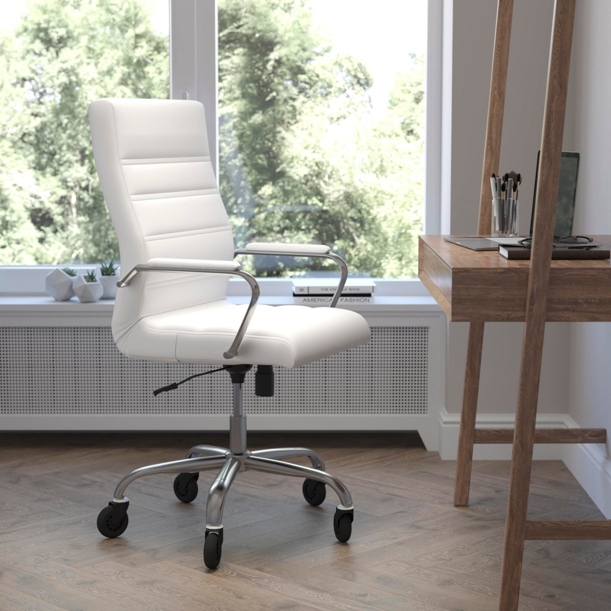 Flash Furniture Whitney High Back White Leathersoft Executive Swivel Office Chair With Chrome Frame, Arms, And Transparent Roller Wheels