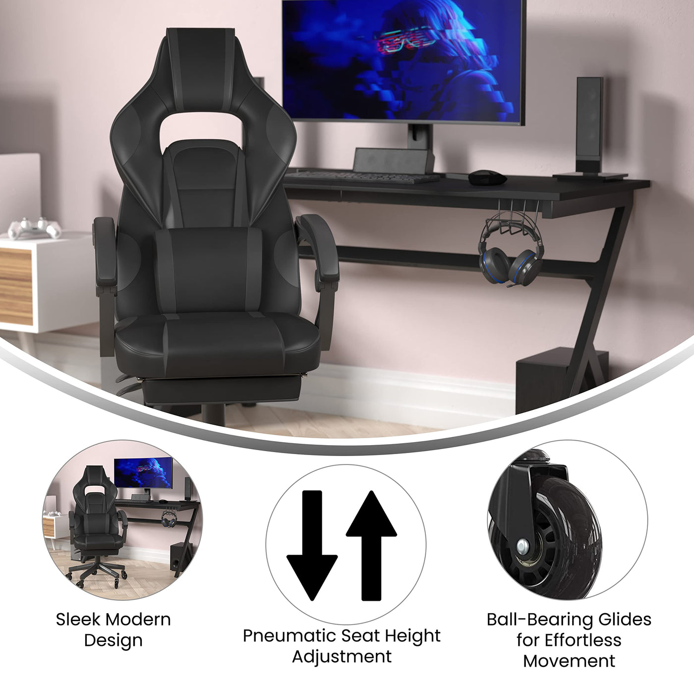 Flash Furniture X40 Gaming Chair Racing Computer Chair With Fully Reclining Back/Arms And Transparent Roller Wheels, Slide-Out Footrest, - Black/Gray