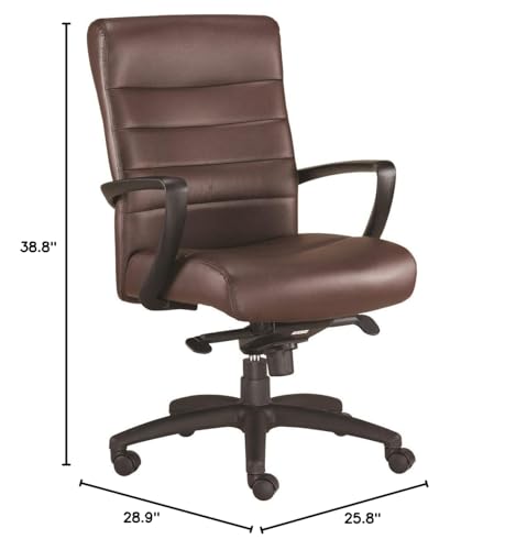 Take total control of your seating with the adjustable seat, height, and tilt mechanisms of this office chair. It comes with a fully padded seat and back for the best cushioning effect, while the caster wheels give you mobility. Now you can work long hours without any form of discomfort; simply set it to a position that feels natural for you. Its superb leather upholstery and black finish creates a bold, professional look in your office. Dimensions: 25.8' x 28.9' x 38.8'.
