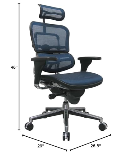 This modern office chair gives you absolute control of your seating position with adjustable seat, back angle, arms, height, depth and tilt mechanisms. Now you can work long hours without any form of discomfort; simply set it to a position that feels natural for you. The mesh back and fully padded seat gives you the best cushioning effect, while the caster wheels provide mobility. Its superb leather upholstery and plum red finish creates a bold, professional look in your office. Dimensions: 26.5' x 29' x 46'.