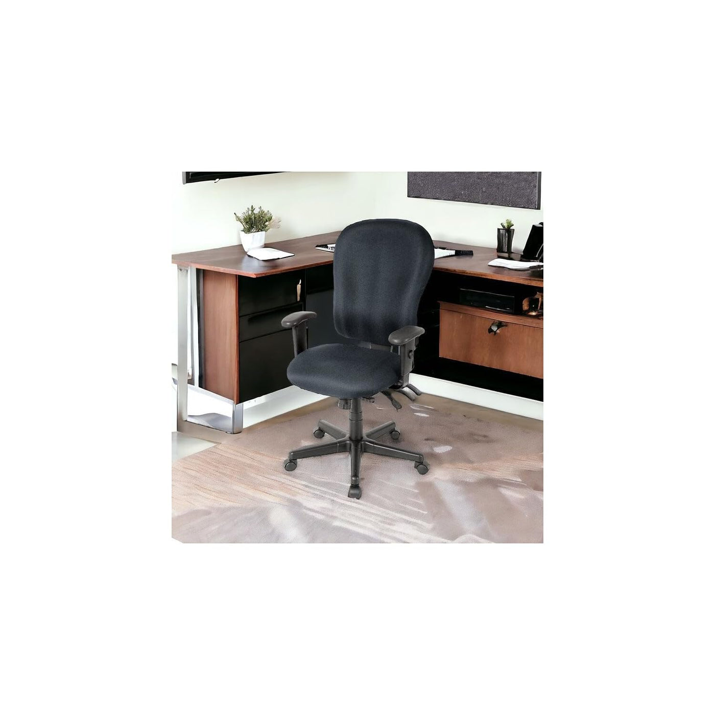 Take total control of your seating with the adjustable seat, back angle, arms, height, and tilt mechanisms of this office chair. It comes with a fully padded seat and back for the best cushioning effect, while the caster wheels give you mobility. Now you can work long hours without any form of discomfort; simply set it to a position that feels natural for you. Its superb leather upholstery and charcoal finish creates a bold, professional look in your office. Dimensions: 29" x 26" x 40.5".