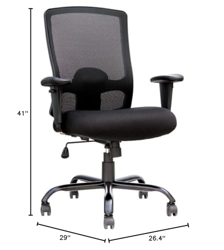 Give your office a professional look with this breathable office chair. It comes with a mesh back and well padded seat, upholstered in soft black fabric, resting on a metal base with caster wheels. Also you get to control how you sit with its adjustable seat, arms, height, and tilt mechanisms. Henceforth you can complete each day's work without any form of discomfort; simply set it to a position that feels natural for you. Dimensions: 29" x 26.4" x 41".