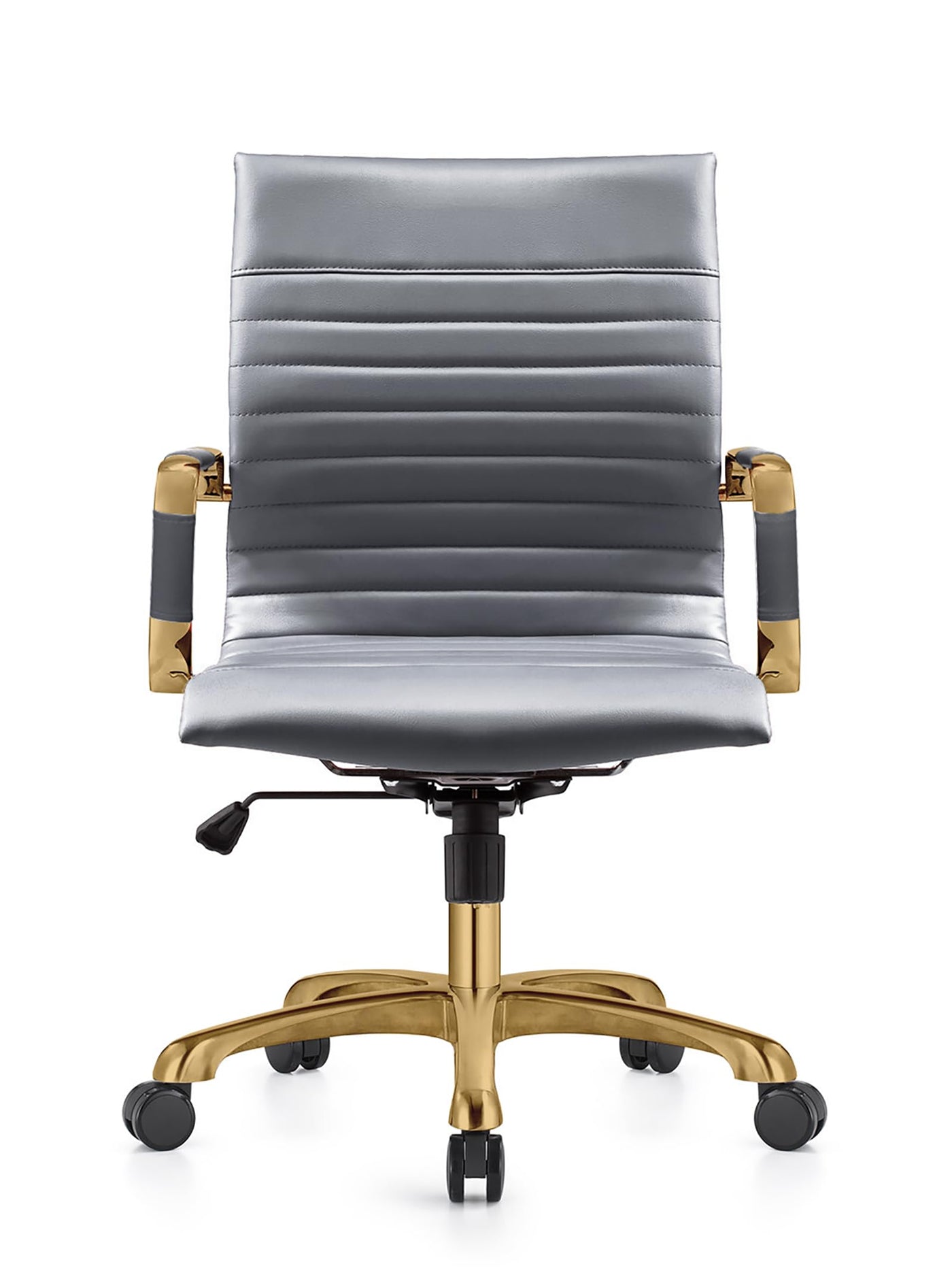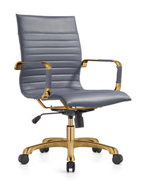Sleek and contemporary, the Harris soft pad chair adds style to just about any setting while providing the user with a functional and comfortable seat. The chair's clean, contemporary lines enhance any decor and work well in your office, conference, home, college, reception desk, etc. The chairs Gold steel base is fitted with five dual-wheel casters, while a tension knob and tilt lock allow for easy back position adjustments. This is a chair made for the modern office, and a welcome embodiment of the spirit of progress and determination.