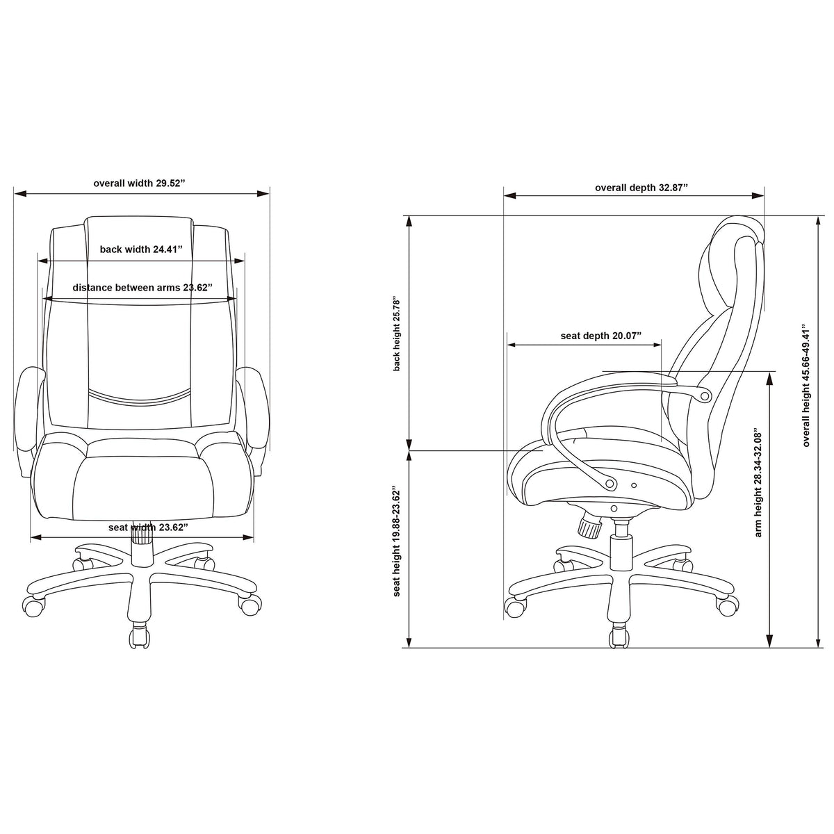 Big & Tall Chair features bonded leather upholstery, a 500 lb. weight capacity and UltraCoil comfort with coiled comfort springs. This advanced foam-layering system is designed to offer deliberate, unique and zone-based support for a more enjoyable seating experience. Functions to customize position include pneumatic seat-height adjustment (3-1/2" from 19-7/8" to 23-5/8"), 360-degree swivel, tilt and tilt tension. Fixed, chromed metal arms feature upholstered pads. The 29" chromed metal base is equipped with 2" heavy-duty nylon, hooded, dual-wheel casters. Seat measures 23-5/8" wide x 20" deep. Back size is 24-2/5" wide x 25-3/4" high.