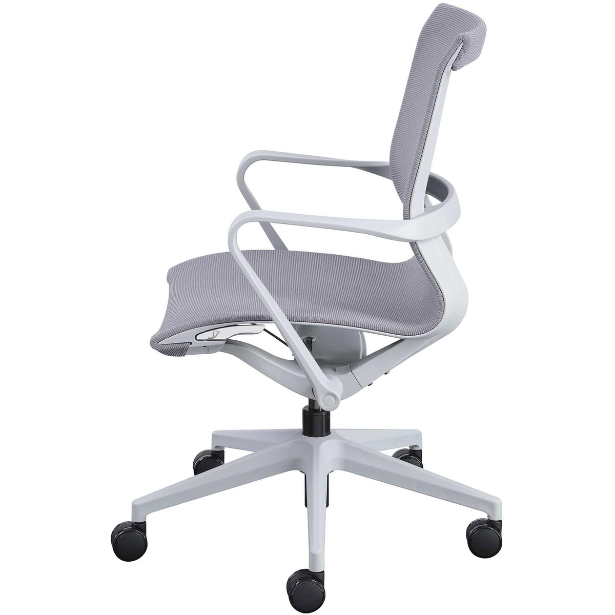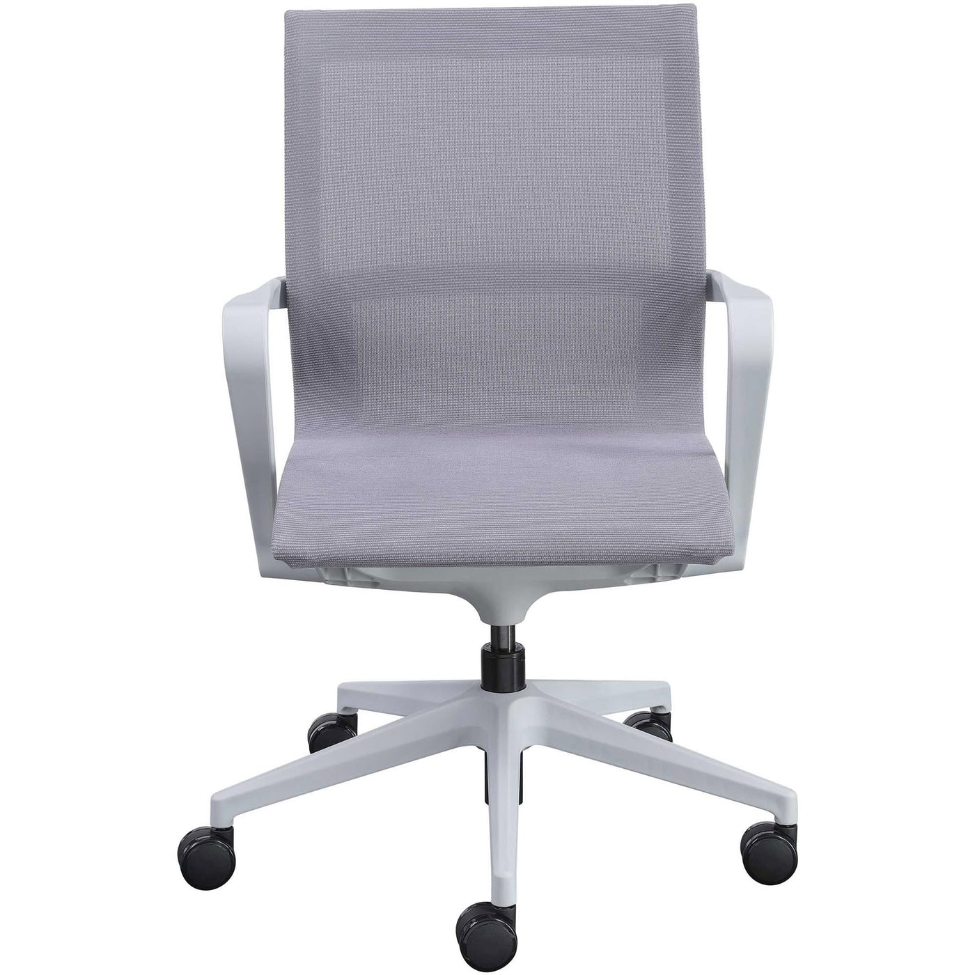 Executive Mesh Mid-back Chair provides flexible support during stressful workdays. Nylon mesh over the back and seat offer a breathable surface that responds to the shape of your body. Ergonomic curve in the low back offers a more natural space for a more natural sitting position. Other comfort features include dual-action synchro tilt, pneumatic seat-height adjustment, 360-degree swivel, tilt and tilt lock. Plastic chair frame and plastic fixed arms are easy to clean. The five-star nylon base is equipped with dual-wheel casters for easy mobility. Weight capacity is 275 lb.