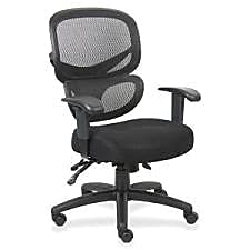 Contemporary executive chair features an ergonomic mesh back to provide exceptional back support and prevent body heat and moisture buildup. Posture mechanism/lock adjusts the back angle independently of leather seat and can be locked in an infinite number of positions. Other functions include pneumatic seat-height adjustment, 360-degree swivel, tilt, tilt tension and tilt lock. Chair glides easily on the 27" nylon five-star base and hooded, double-wheel casters.