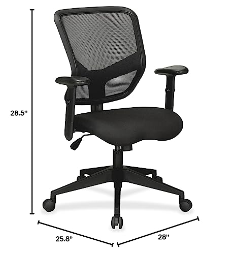 Executive mid-back chair offers a breathable mesh back; height-adjustable, Variable-Resistance Lumbar (VRL) support; and upholstered cushioned seat to enhance your comfort. Simple tilt mechanism can raise or lower the seat to your desired height using the handle. Increase or decrease the tilt tension with the knob control. Functions also include 360-degree swivel and height-adjustable arms with soft polyurethane pads. Black, five-star nylon base is equipped with smooth-rolling casters for easy mobility. Weight capacity is 250 lb. Mid-back chair meets or exceeds BIFMA standards.