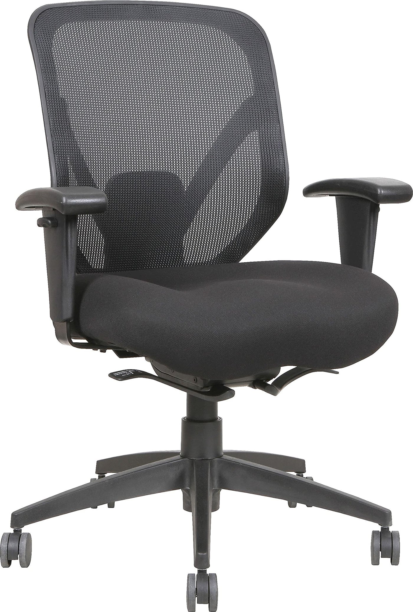 Mid-back chair features a body weight control mechanism that moves with you. This chair control allows your body weight to recline the chair and return the chair to its task position for easier control. Self-tilt tension adjustment offers five locking positions. Other functions include 360-degree swivel and pneumatic seat-height adjustment from 18-1/4" to 22-1/4". The height-adjustable arms are covered with polyurethane pads for your comfort. Recline easily with the mesh back and seat upholstered with fabric. 27-1/6" diameter spider base is made of nylon and equipped with five 60mm dual-wheel casters for easy chair movement. Weight capacity is 250 lb. Seat measures 19-1/8" wide x 17-1/8" deep. Back dimensions are 19-9/31" wide x 21-6/23" high.
