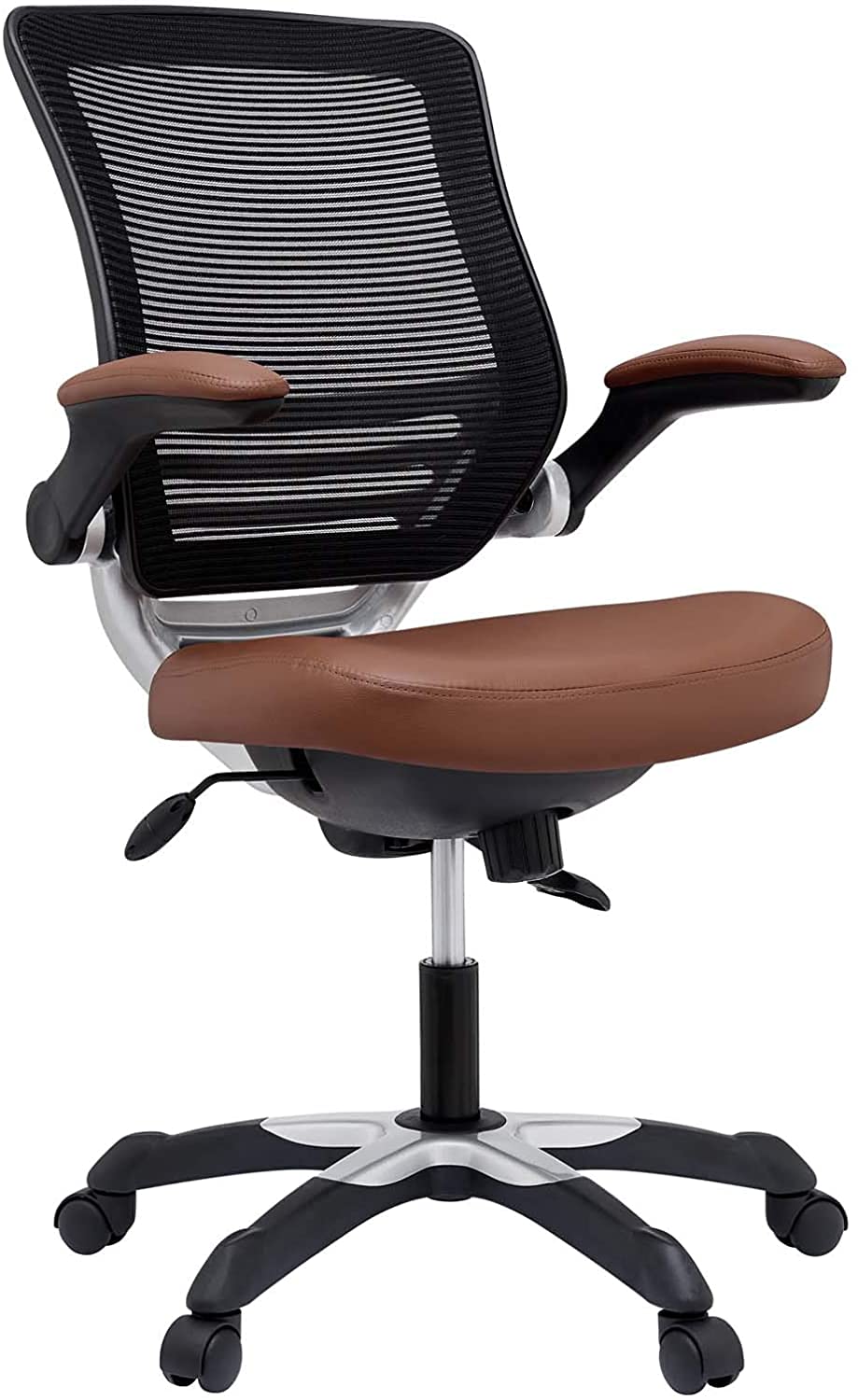 Modway Edge Mesh Back and White Vinyl Seat Office Chair With Flip-Up Arms - Computer Desks in Tan