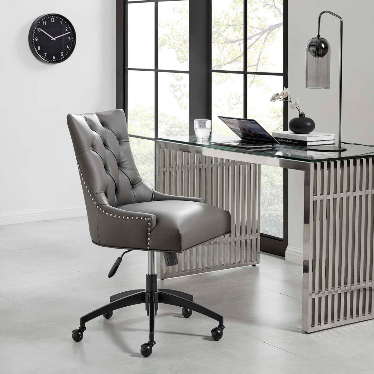 Modway Regent Tufted Vegan Leather Swivel Office Chair, Black Gray